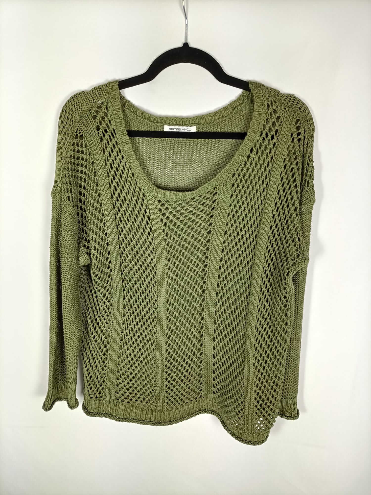 Blanco. Jersey de punto troquelado estilo oversized verde. Elástico. Largo 62 cm