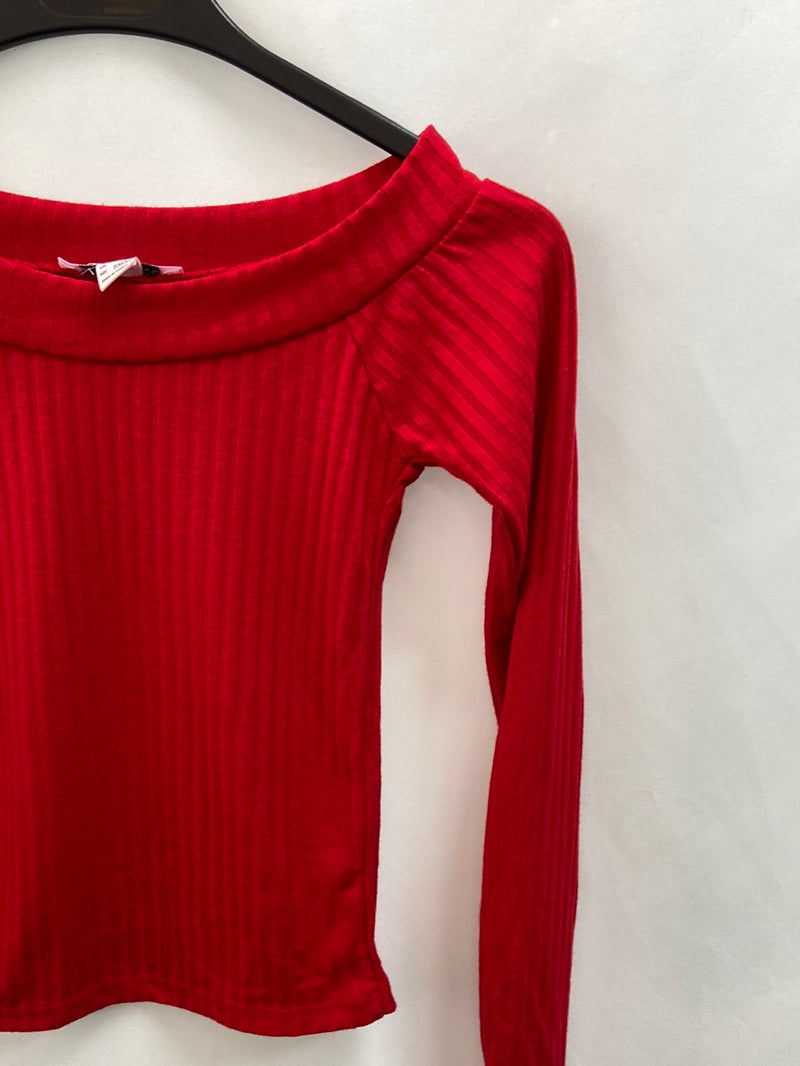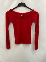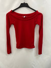 Top rojo de punto de canalé elástico y cuello amplio. De sisa sisa 30 cm, largo 40 cm