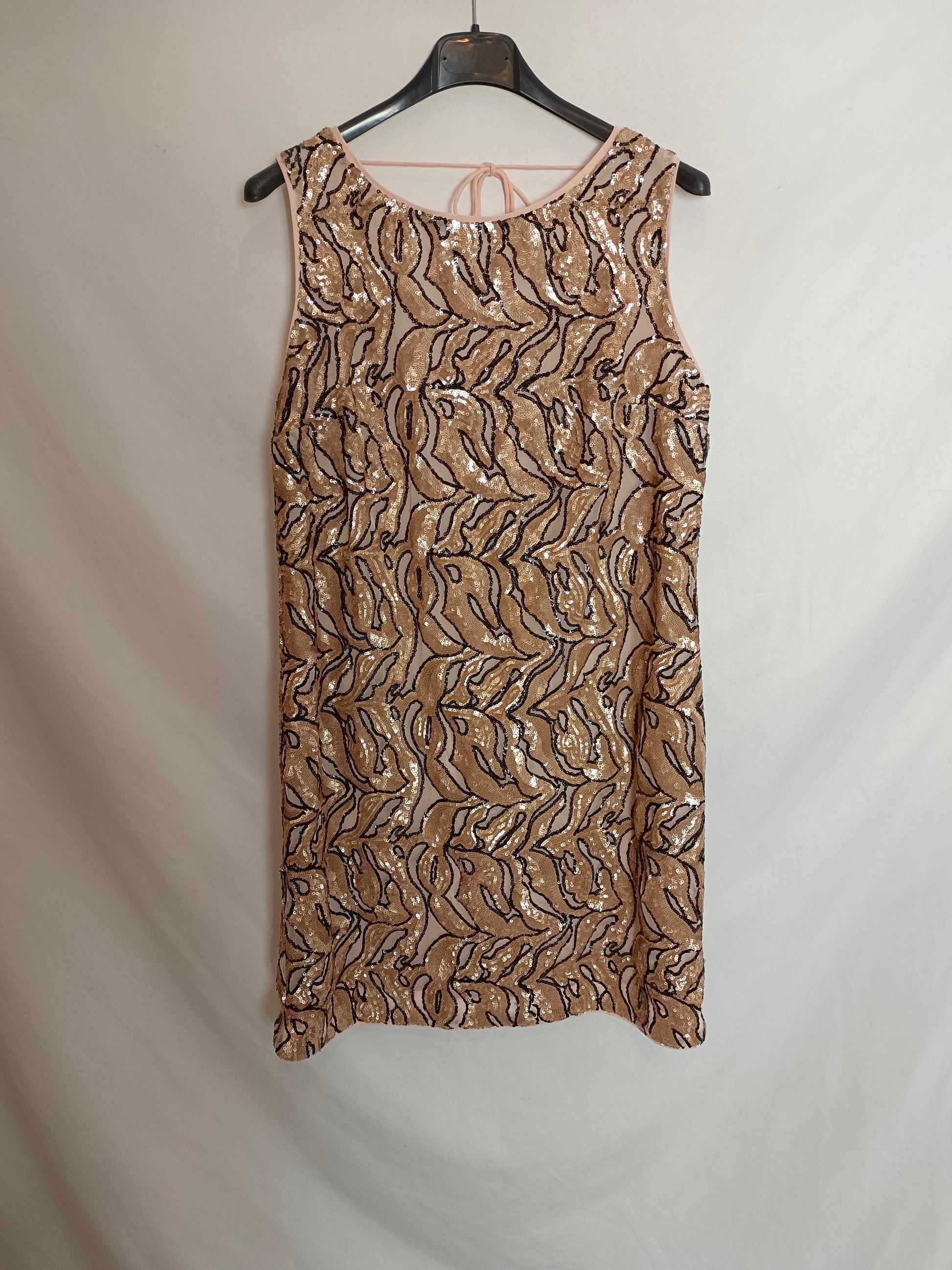 NUEVO CON ETIQUETA. Vestido corto de lentejuelas. estampado print