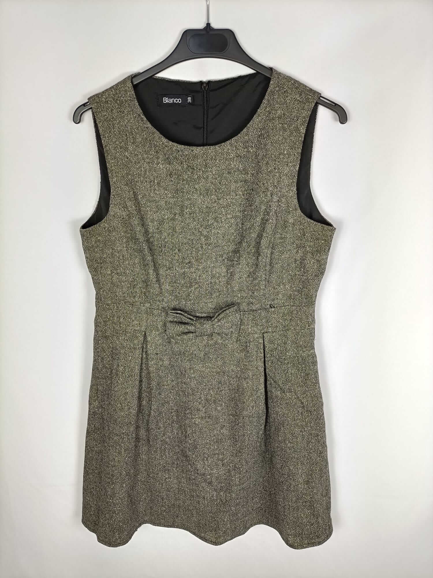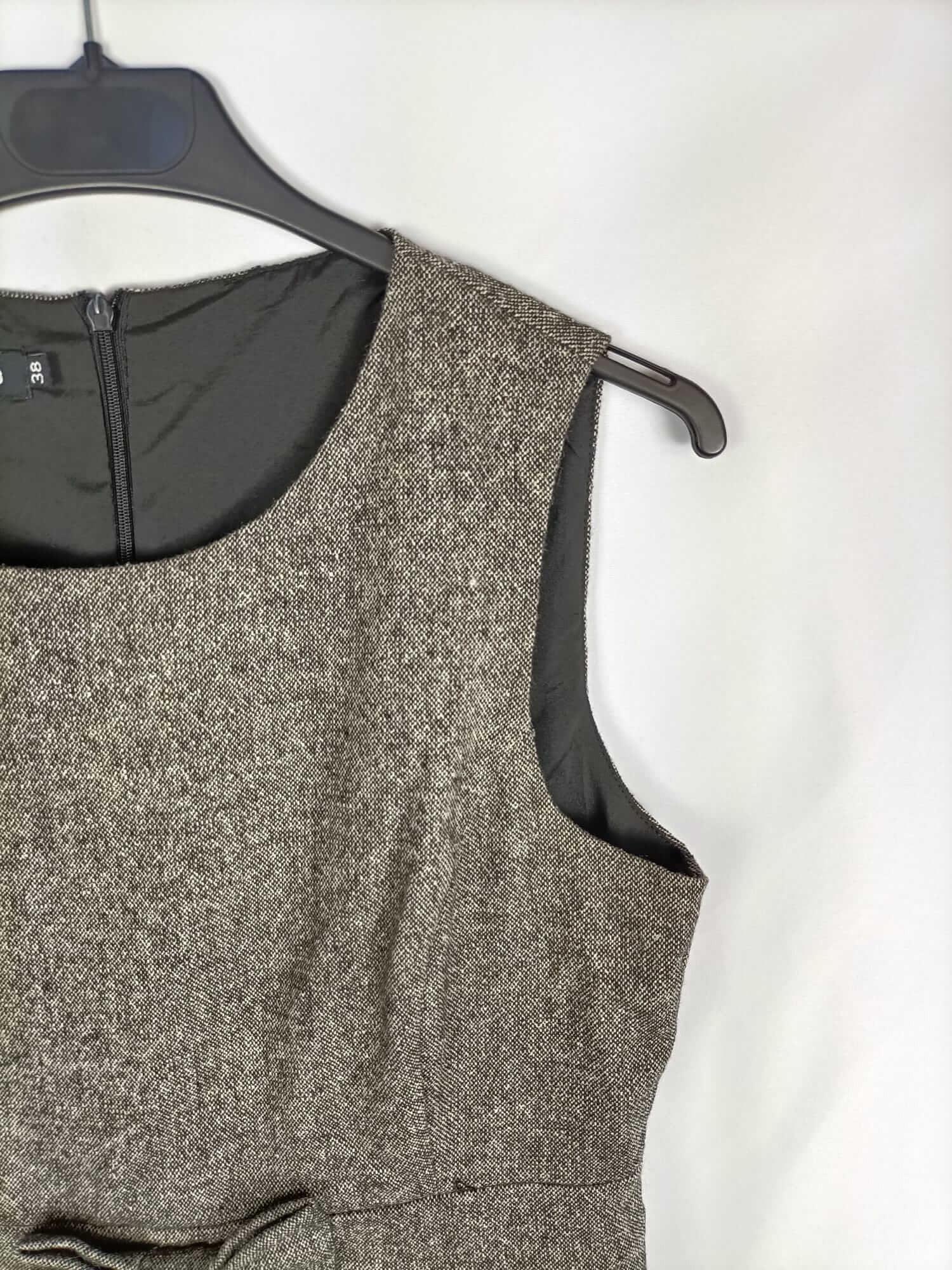 Blanco. 38. Vestido jaspeado gris con detalle de lazada en el centro. No elástico. De sisa a sisa 44 cm largo 81 cm