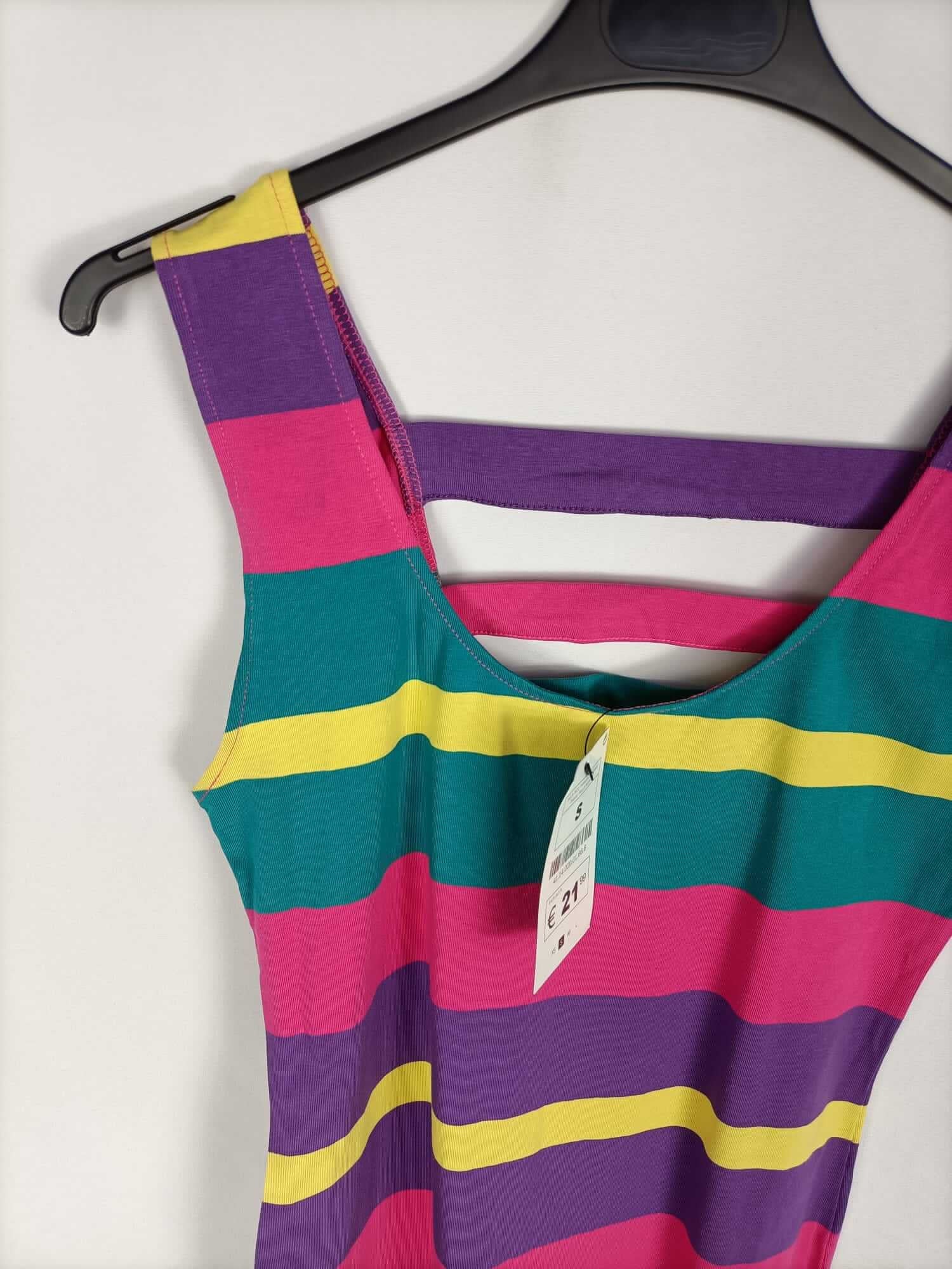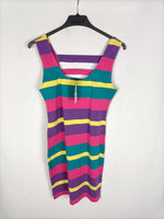 Blanco.s. NUEVO CON ETIQUETA. Vestido ajustando de rayas de colores con espalda baja. Elástico. Largo 84 cm. 21,99 euros