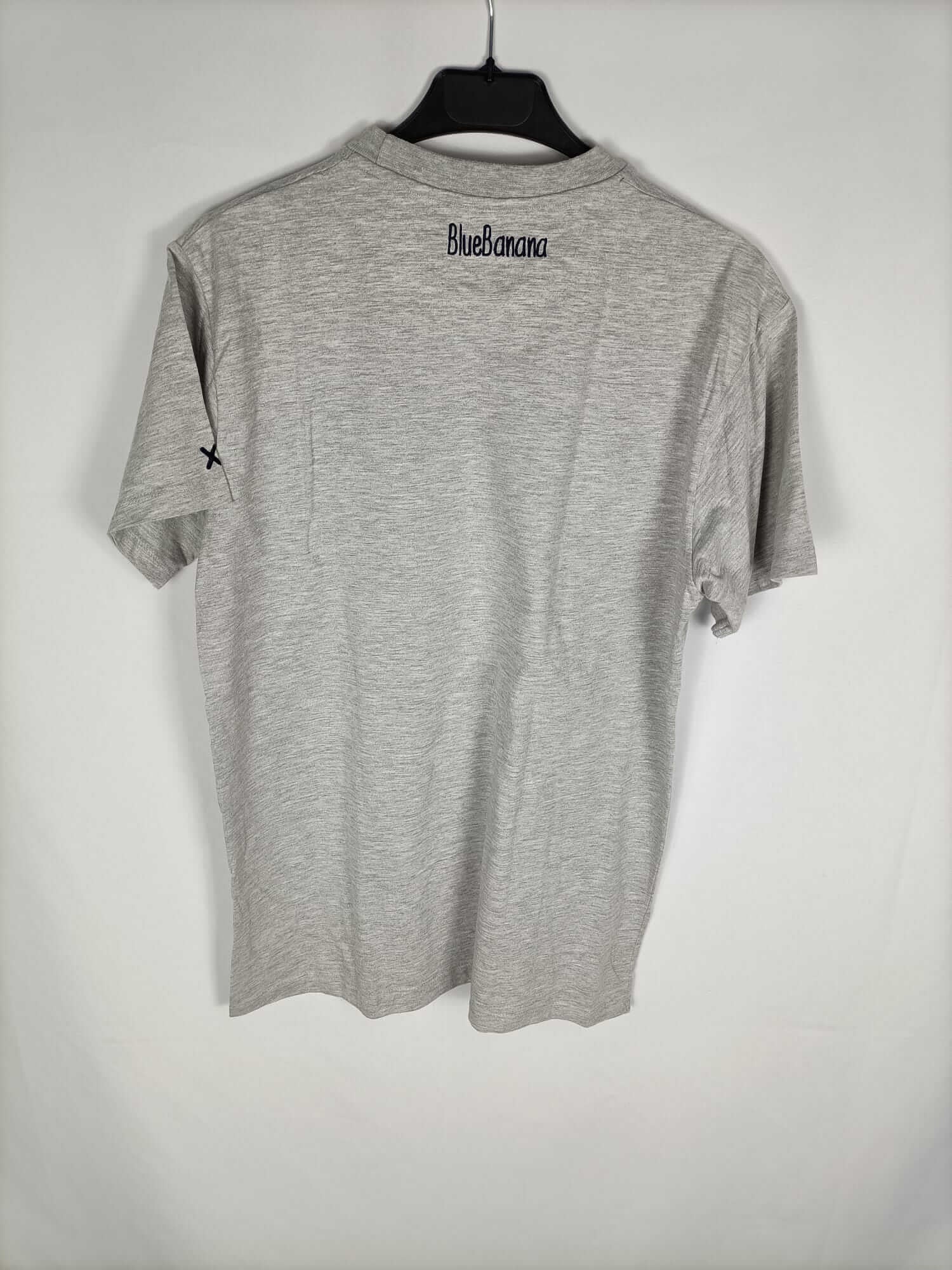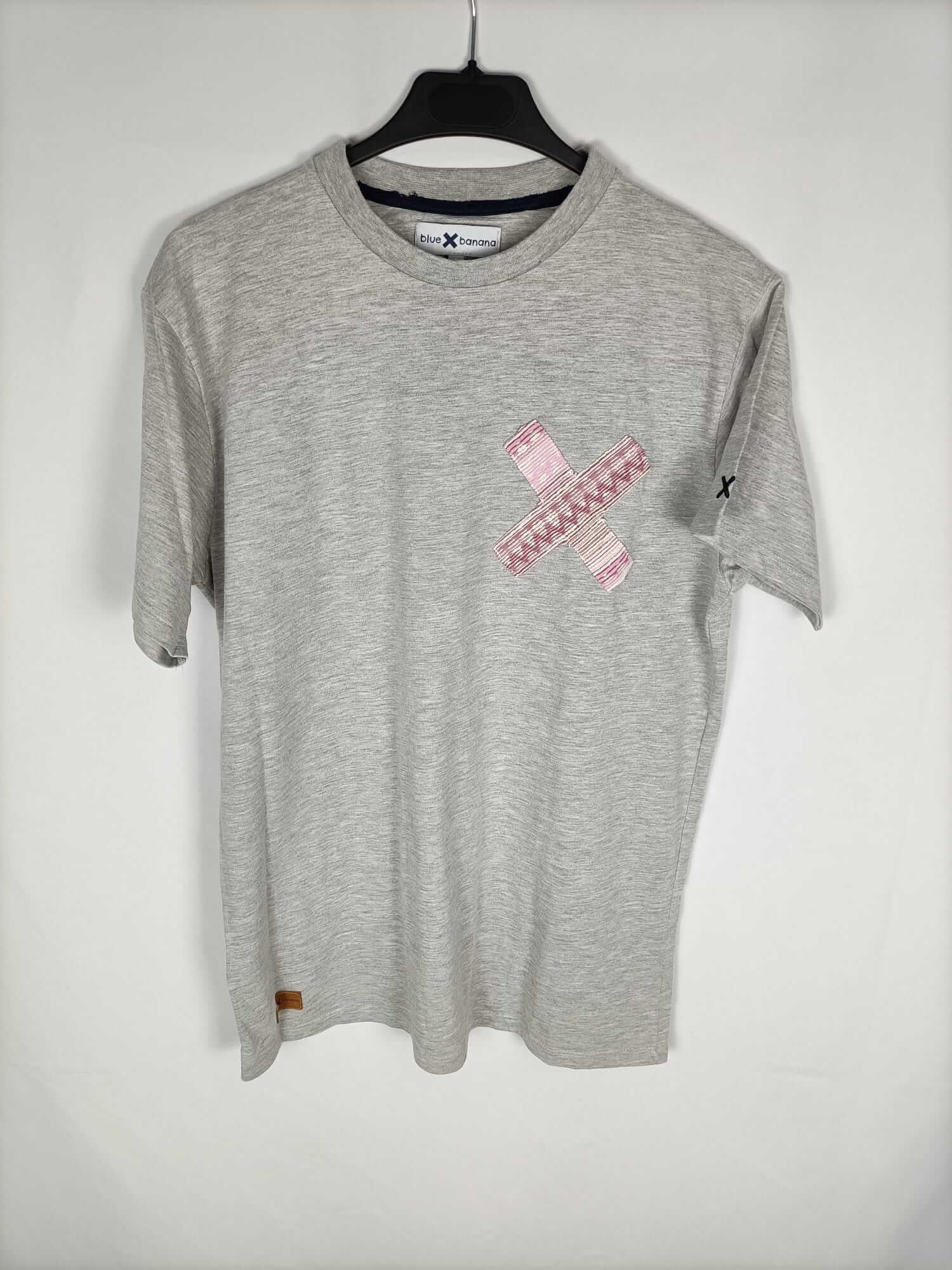 Blue banana. Camiseta gris básica con detalle de X étnica en tonos rosas. Elástica. largo 69 cm