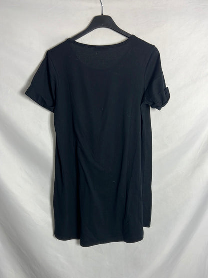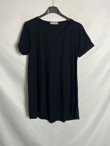 Camiseta negra asimétrica . Largo :76cm parte más larga