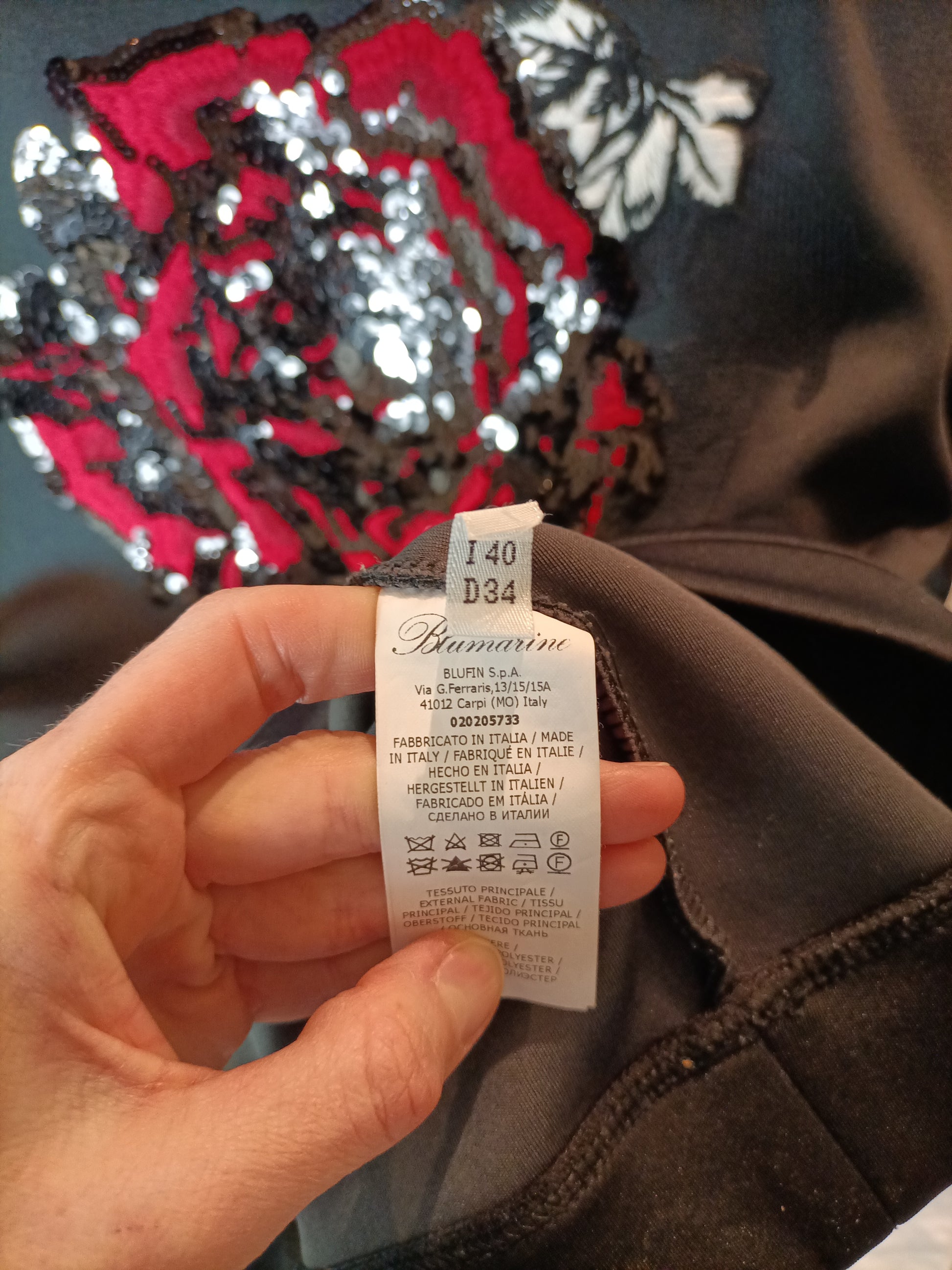 BLUMARINE. Total look falda tubo y top oversized. T 38