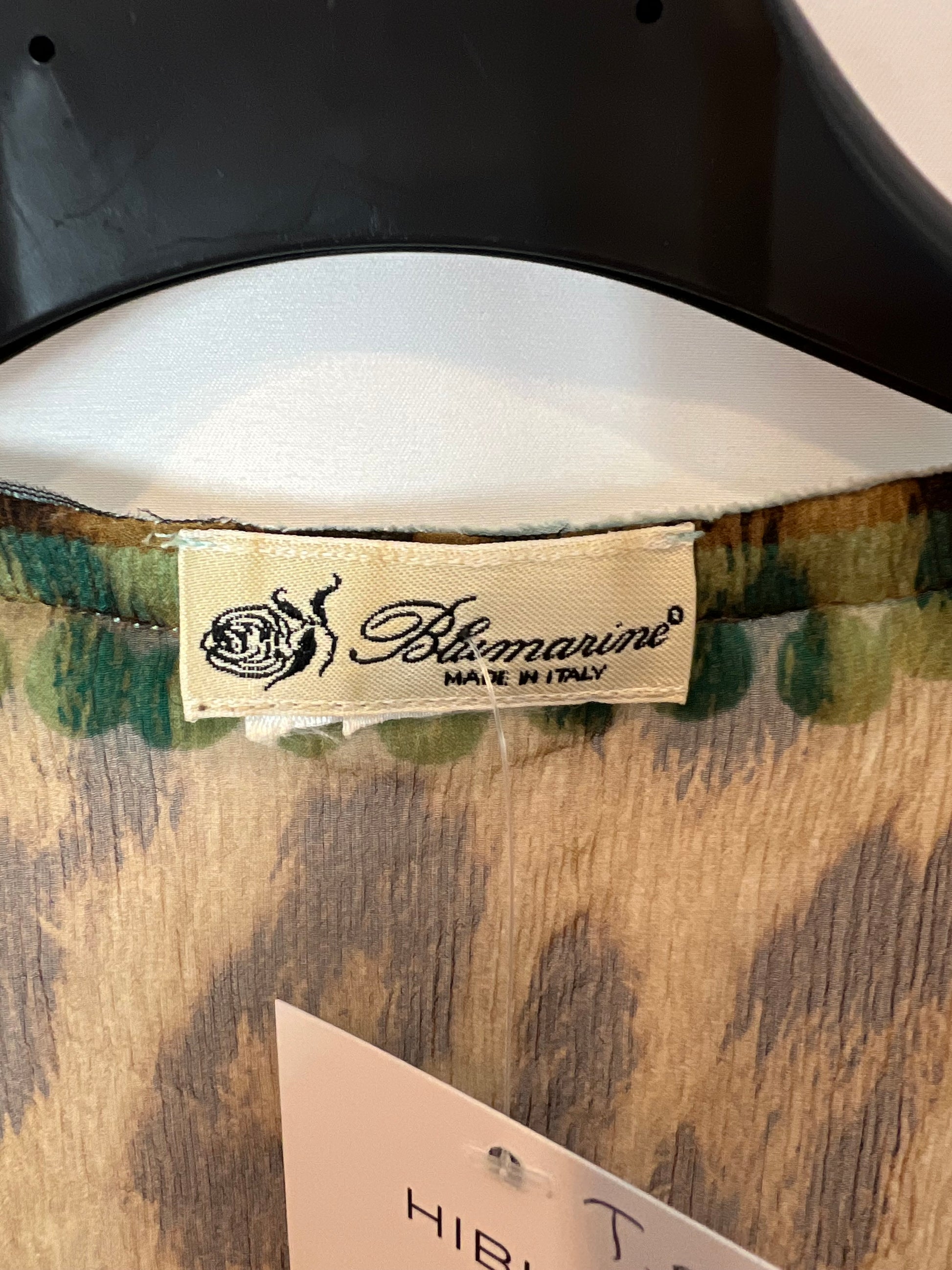 blusa estampada animal print. Cruzada, semitransparente con detalle de borlas . Hombros 40cm, largo 54cm