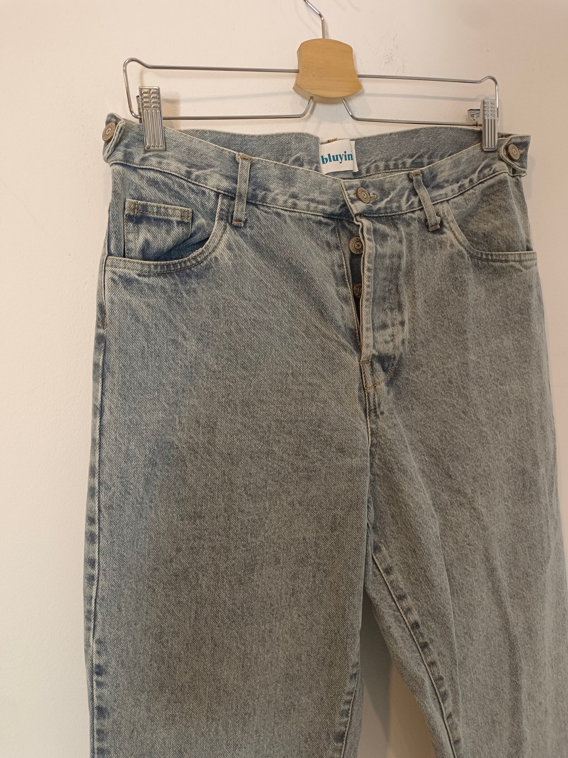 Pantalón monfit vaquero con tejido efecto desgastado. Cintura 42 cm largo 111 cm