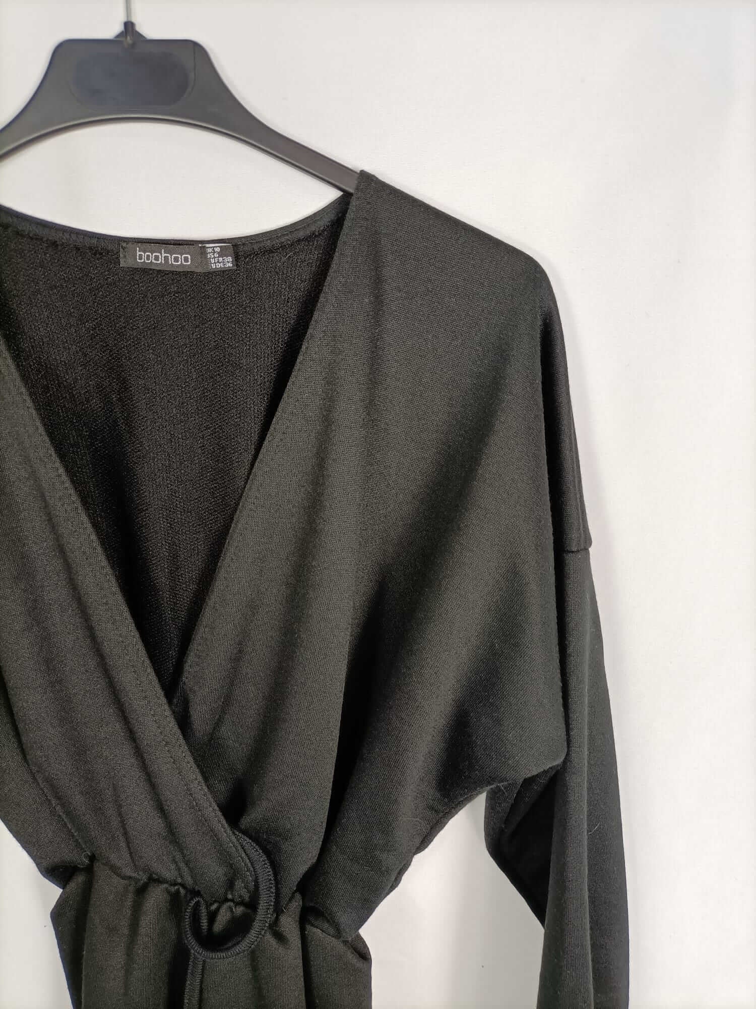 Boohoo. 36. Mono largo negro de tejido elástico. Cintura elástica ajustable. Mangas estilo murciélago. Ajustados al tobillo. Largo 139 cm