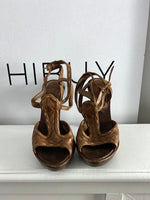 OUTLET. Sandalias marrones piel trenzada. Tienen marcas de desgaste aunquie poco perceptibles