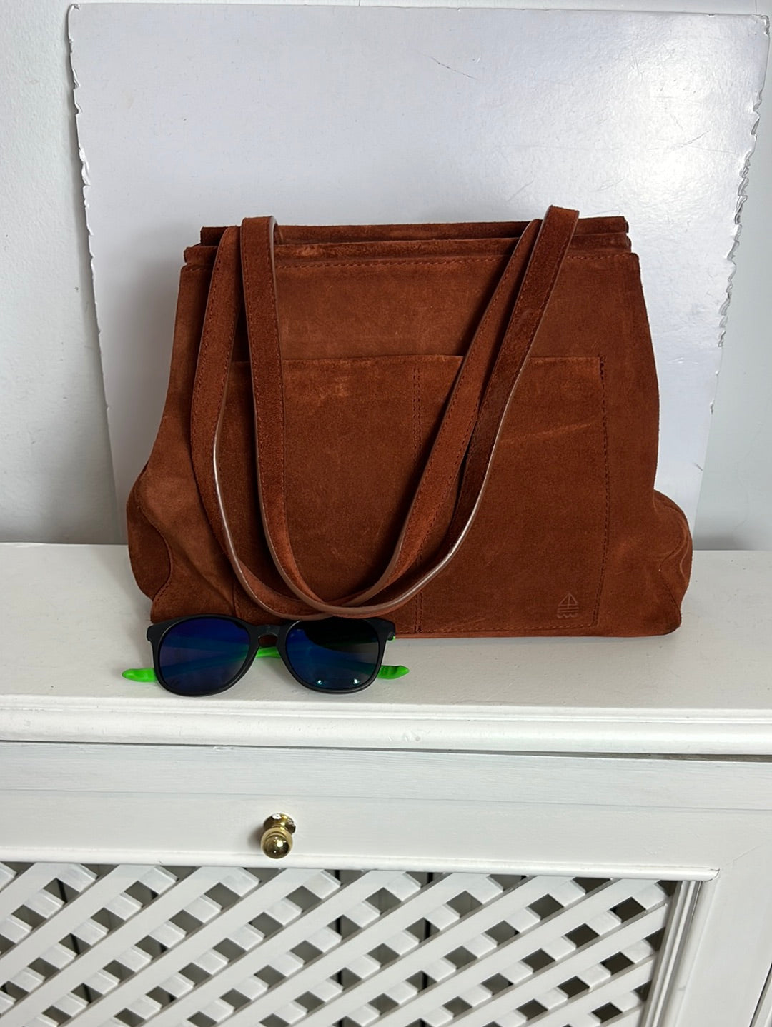 bolso marrón de piel estilo vintage. Tara: marcas de uso en la piel