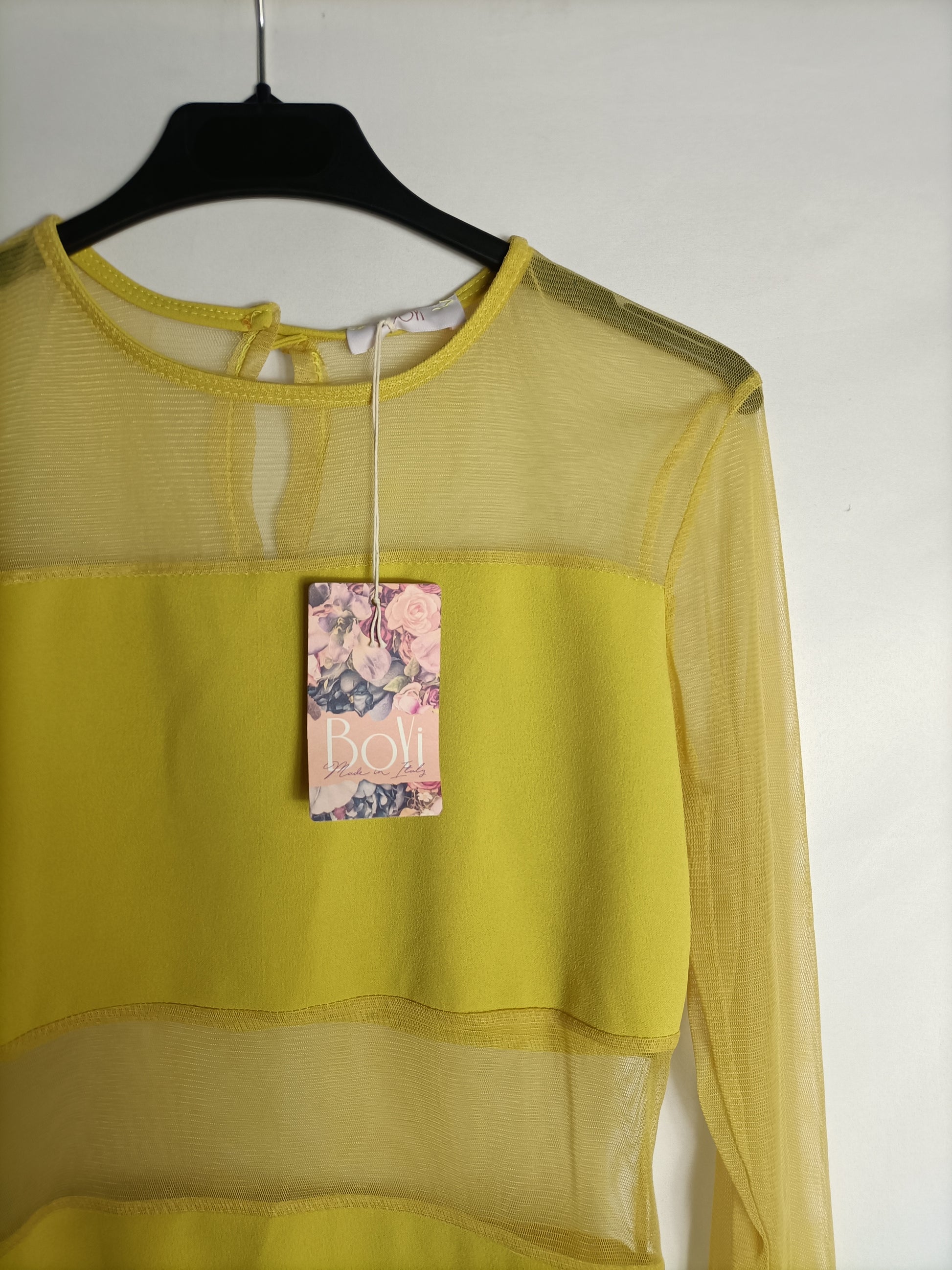 NUEVO CON ETIQUETA. Top amarillo rayas con texturas. Elástico.