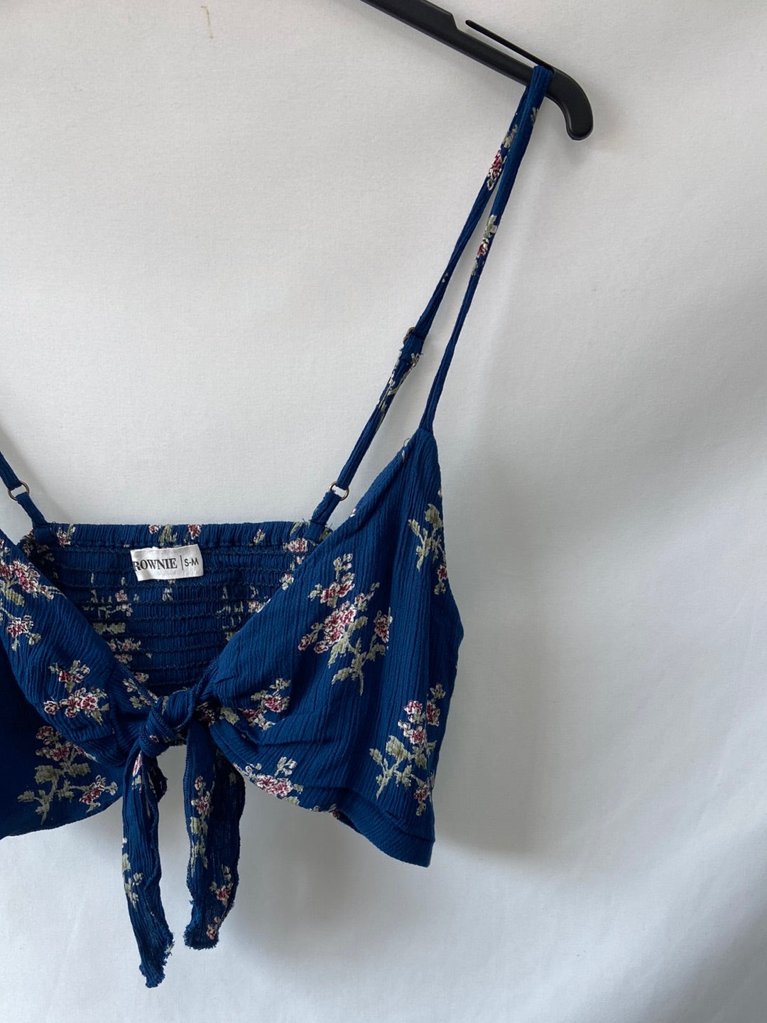 Cropita azul flores con tirantes regulables. Espalda elástica nido de abeja y nudo delantero escote .