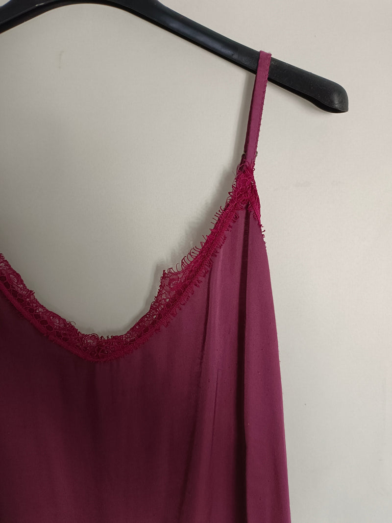 top lencero burdeos con detalles de encaje. Tirantes ajustables.