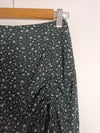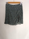 falda corta azul con florecitas grises. Detalle fruncido. cintura 32 cm