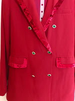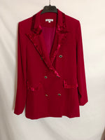 total look de pantalón ancho y blazer con detalle de terciopelo y botones joya. Cintura pantalón 40 cm
