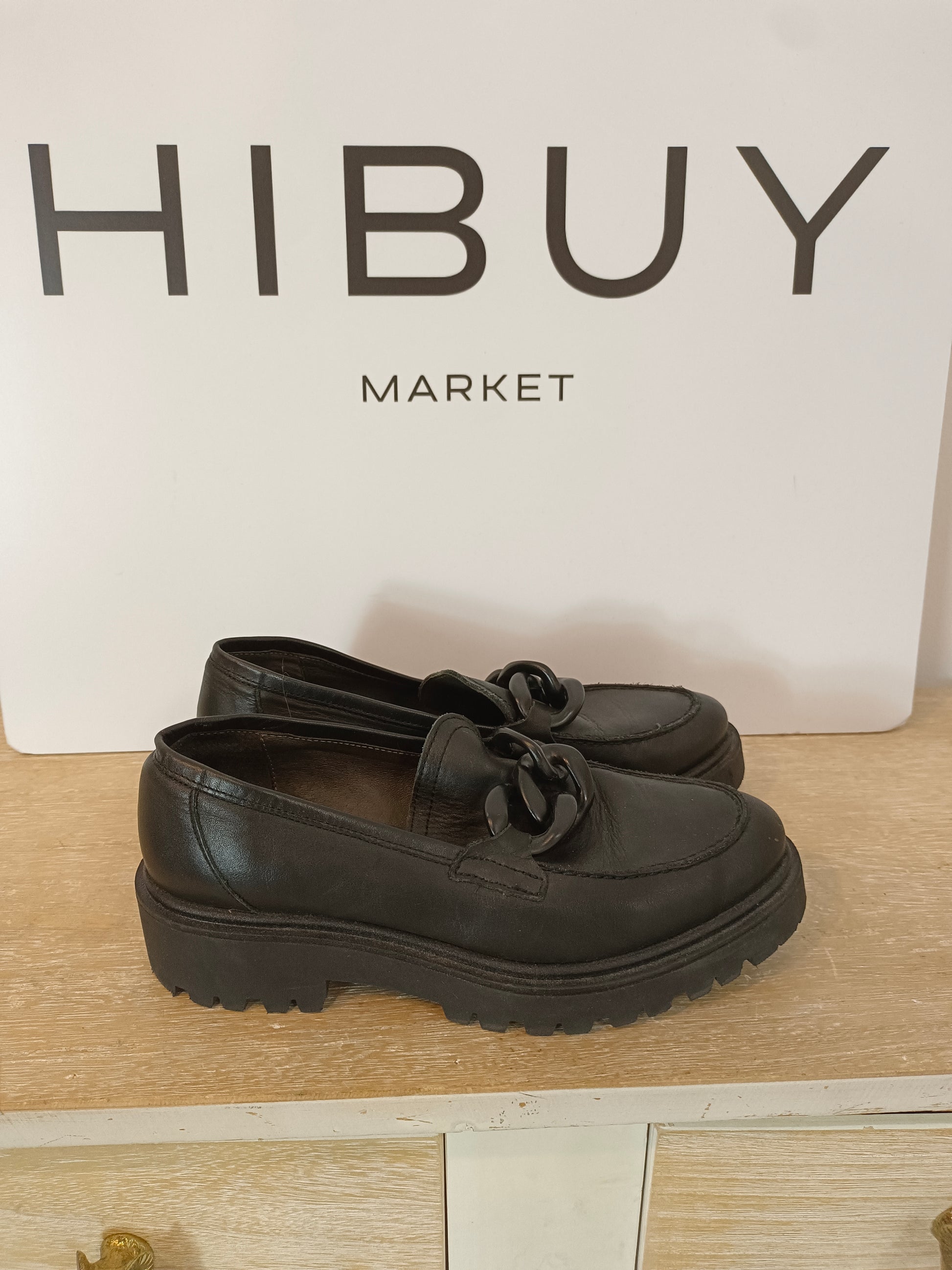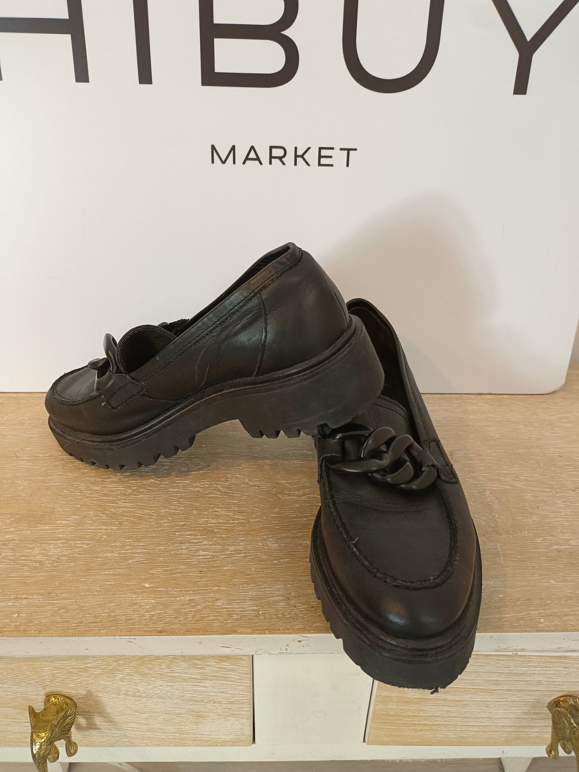 BRYAN STEPWISE. Mocasines negros cadena T.37