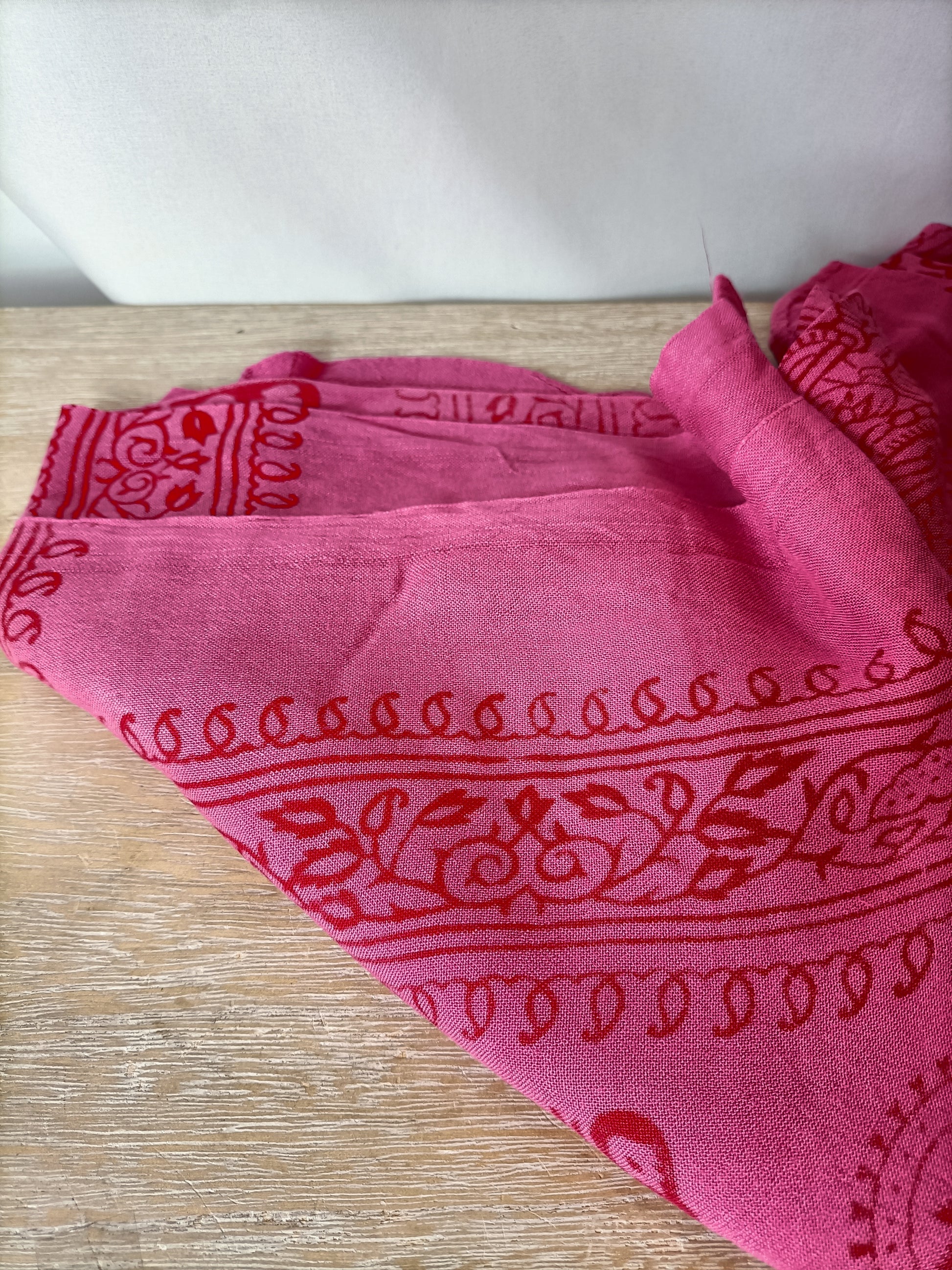 SIN ESTRENAR. Pareo rosa con estampado hippie