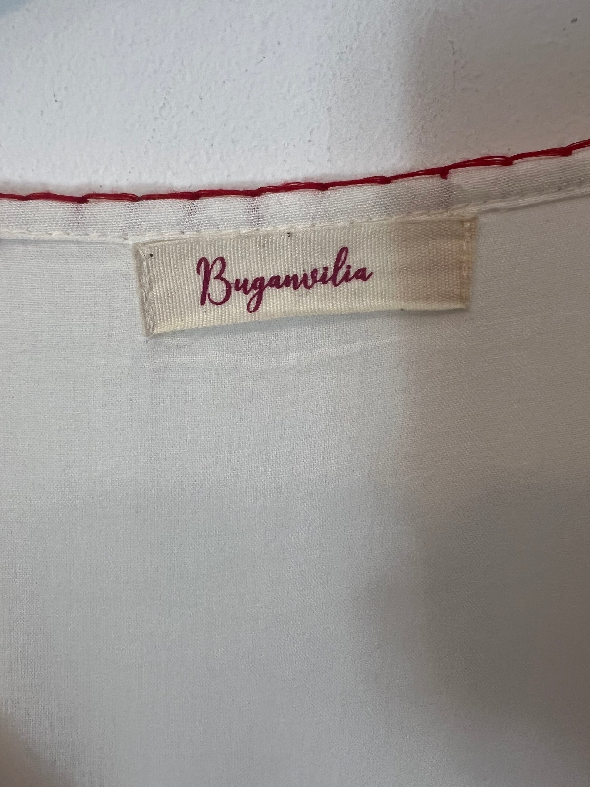 BUGANVILIA. Vestido blanco flores bordadas rojas T.3xl