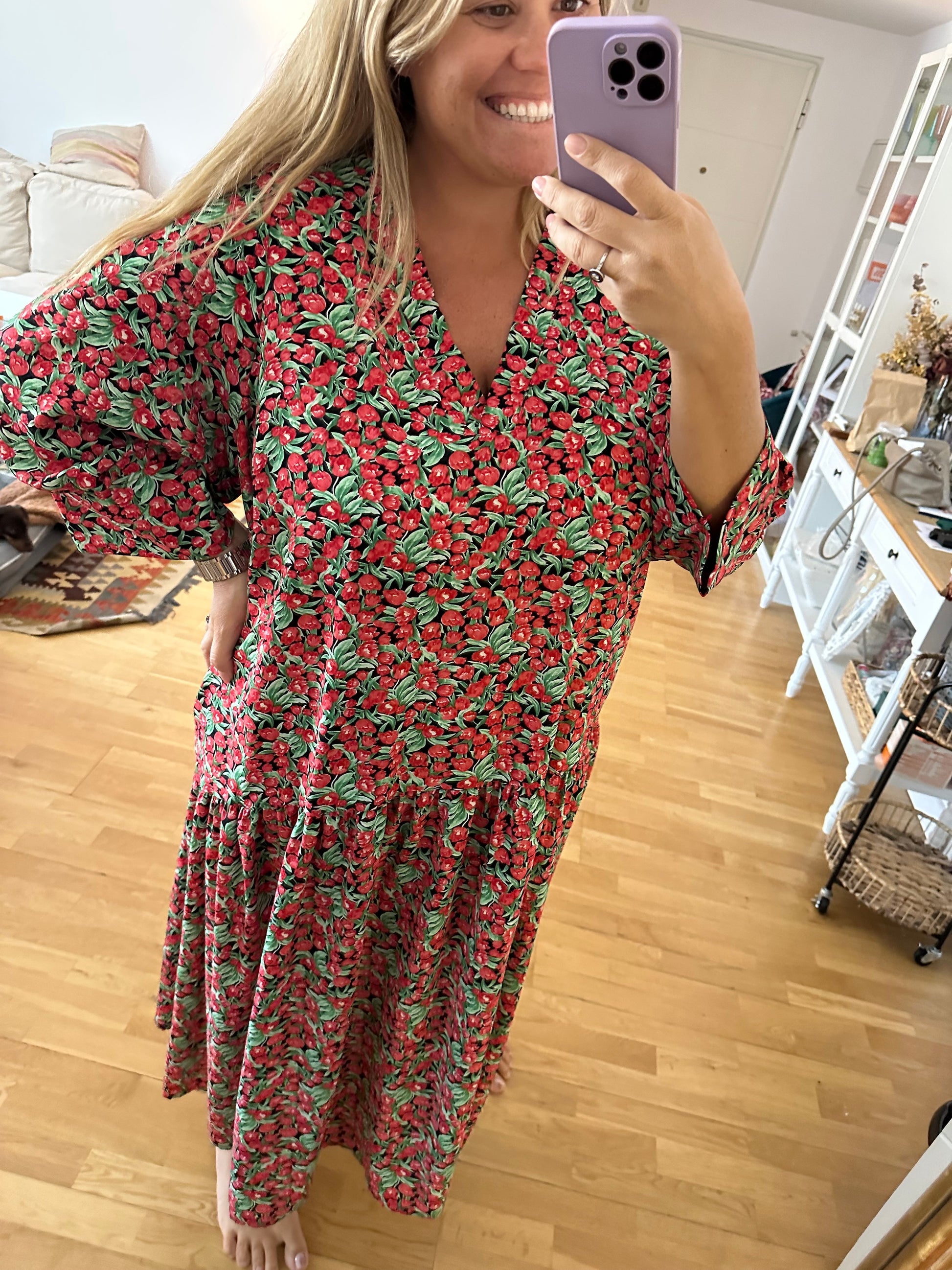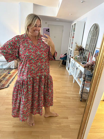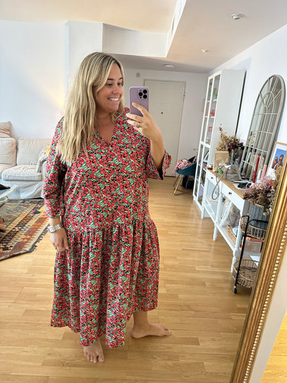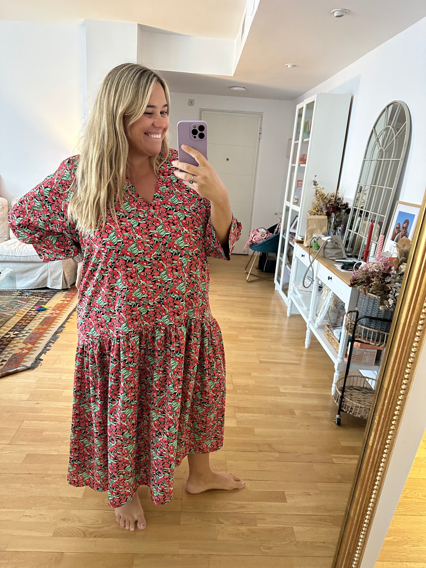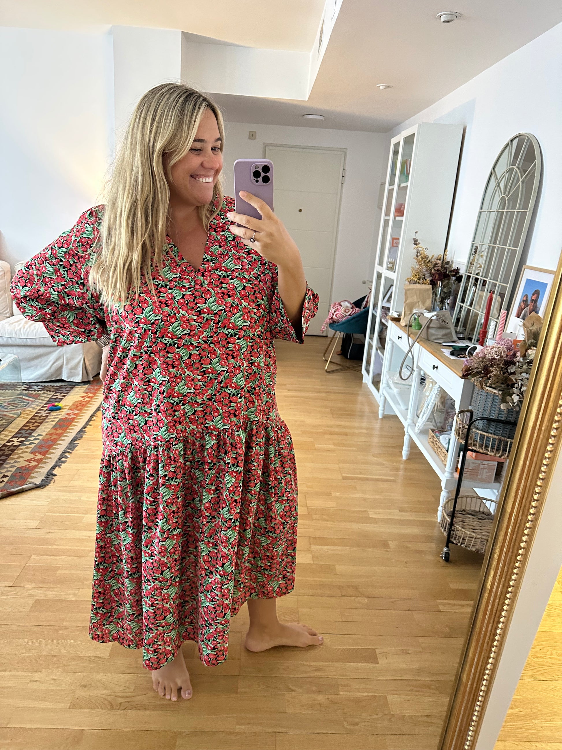 BUGANVILIA. Vestido flores rojas T.u(3xl)
