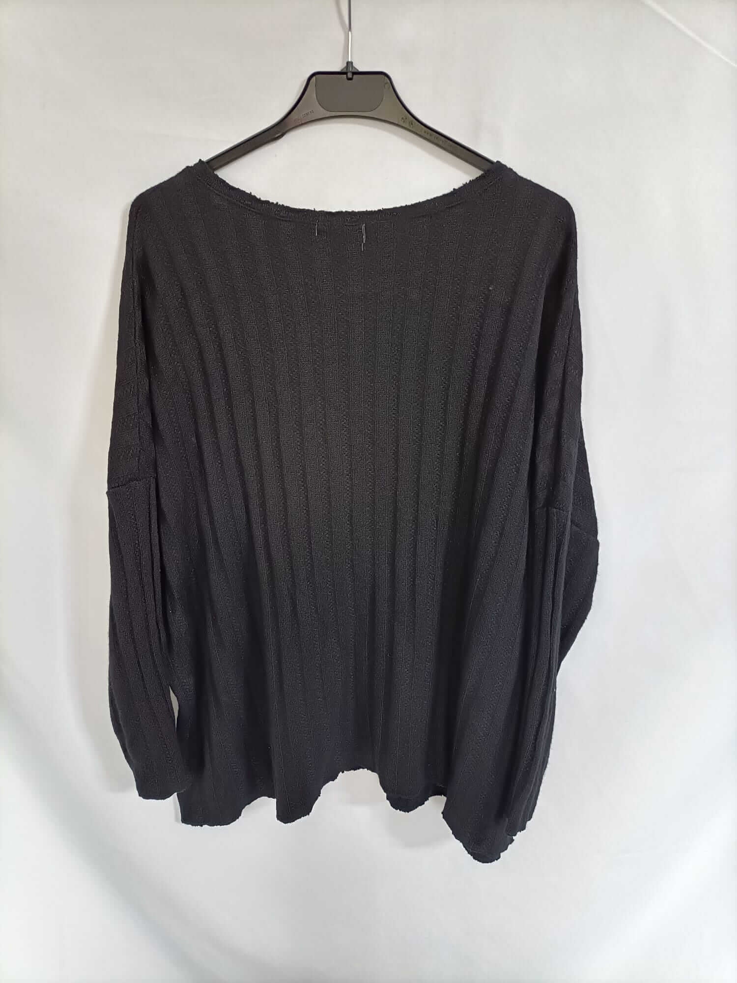 Buganvilia. Tu (m/L). Jersey negro estilo de canalé con las mangas estilo murciélago ajustadas. Fluida. Cuello redondo. Tara: mini cosito en el cuello.