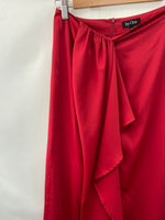 NUEVO CON ETIQUETA. Falda roja midi con detalle de volante lateral. No elásticas con trasera. Largo 83 cm