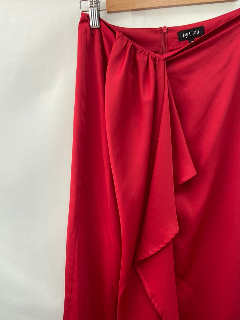 BY CLÉA. Falda midi roja volante (36,38,40)