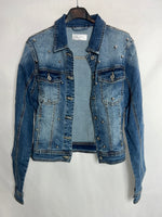 Chaqueta denim bolas plateadas. Tejido elastico. Hombros 41 cm