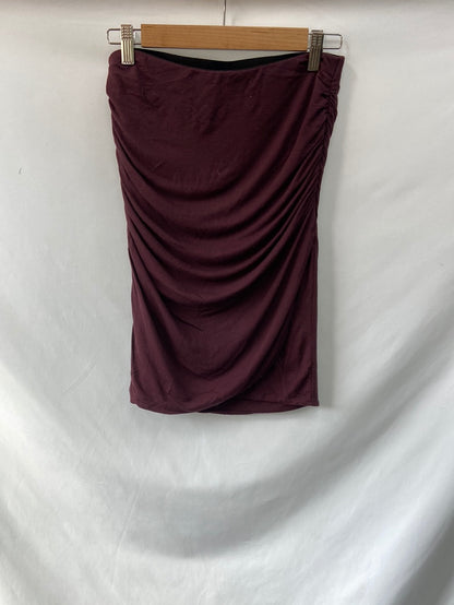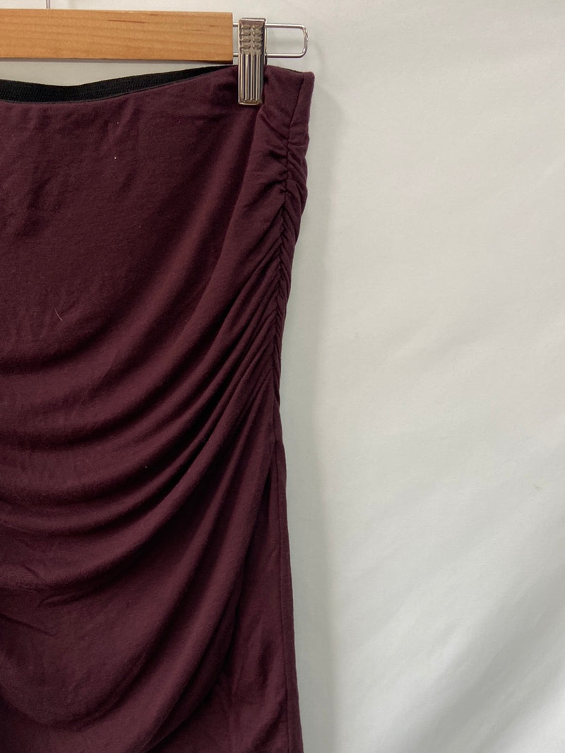 Falda corta burdeos ajustada y fruncida. Es muy elástica. Largo 56 cm
