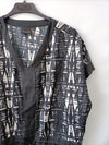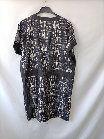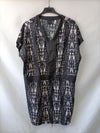 vestido estilo kaftan en tonos negros y blancos oversized. Corte elástico en la cintura con cuerda. Largo 95 cm