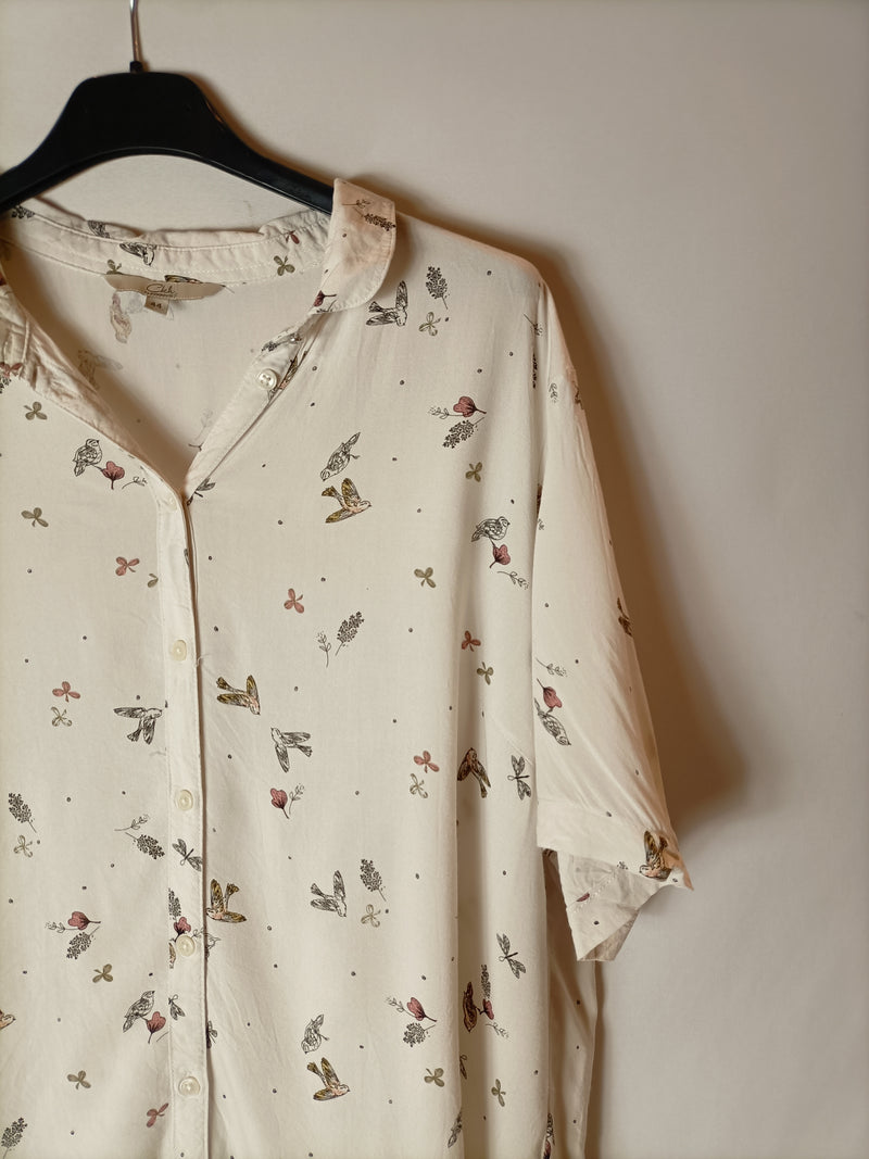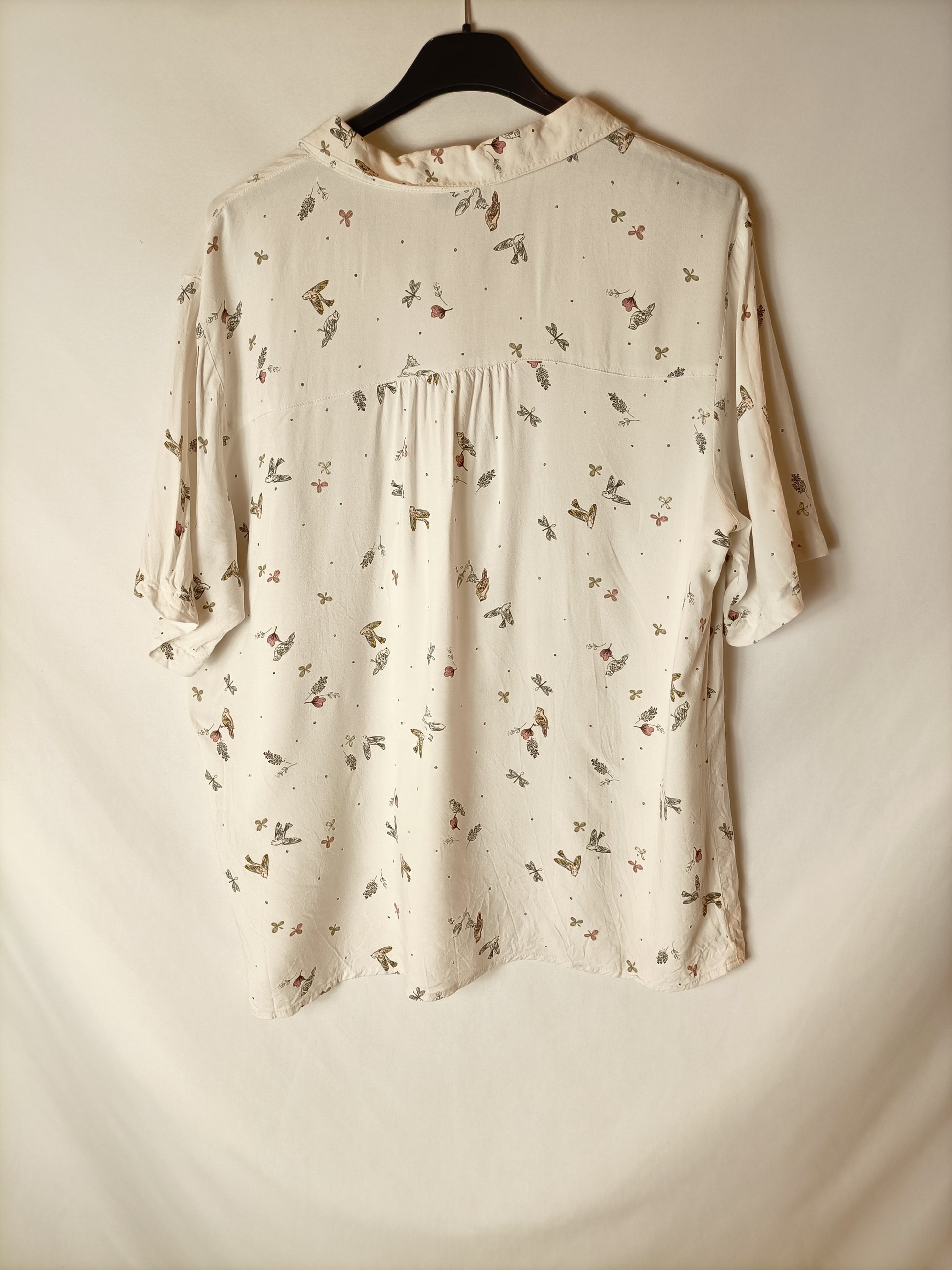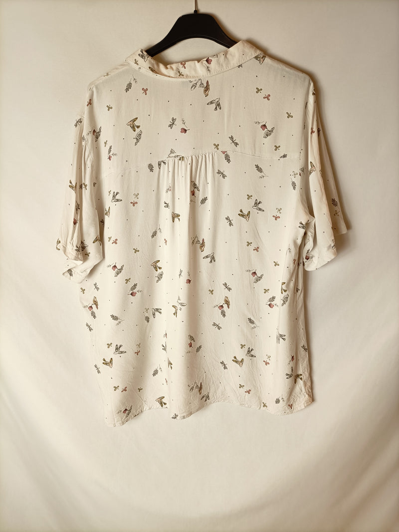 blusa blanco roto/ grisáceo con estampado de insectos.