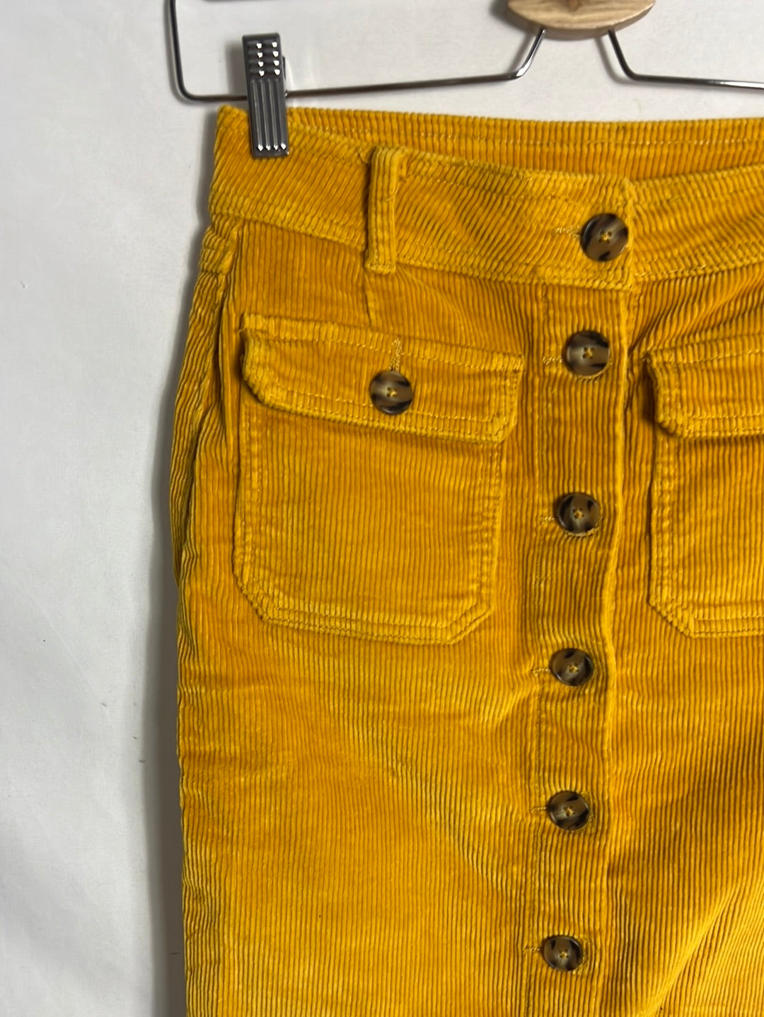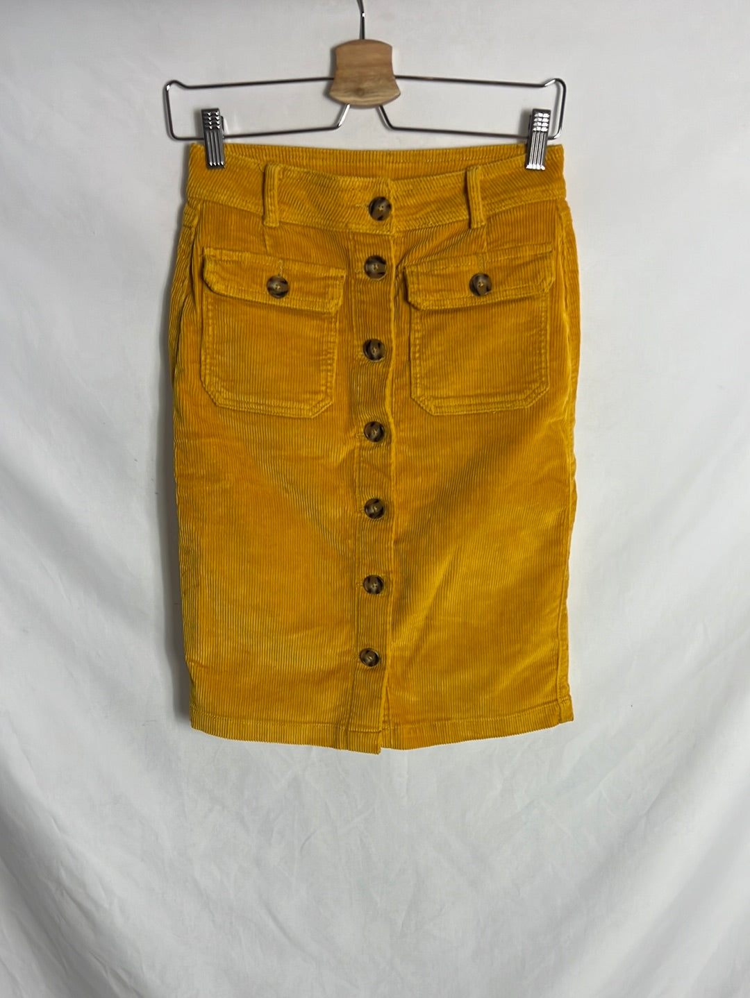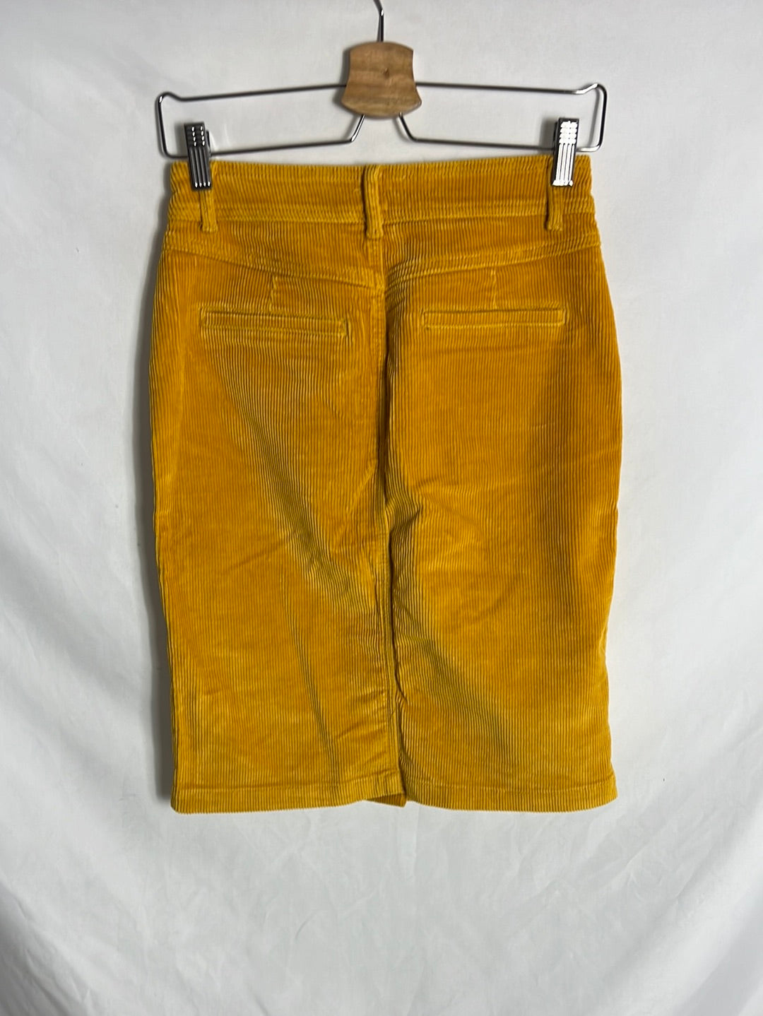 Falda pana mostaza abotonada por la rodilla. Cintura 35cm y largo 57cm