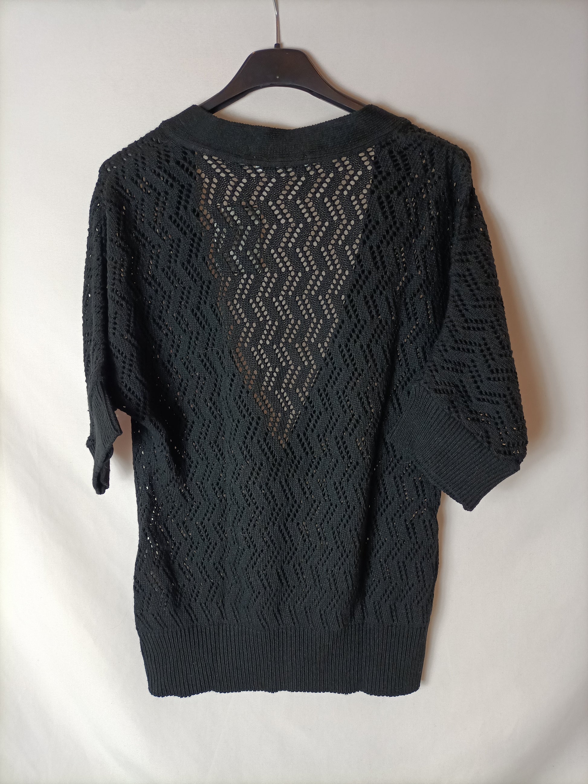 NUEVO CON ETIQUETA. rebeca negra de punto abierto