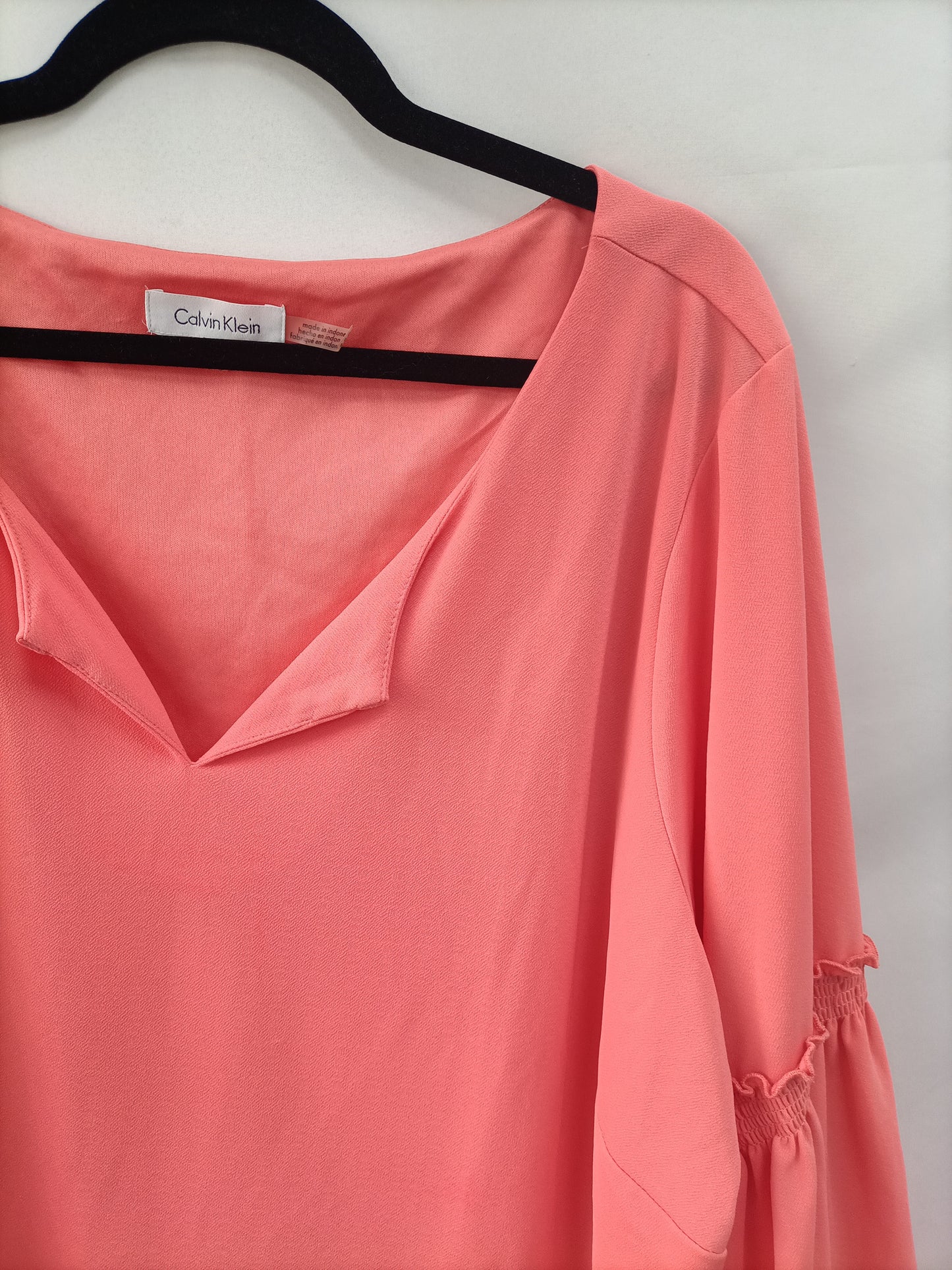 CALVIN KLEIN. Blusa salmón volantes 3XL