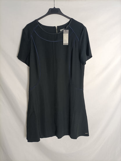 NUEVO CON ETIQUETA. Vestido negro detalles azules. Sisa a sisa 50cm.