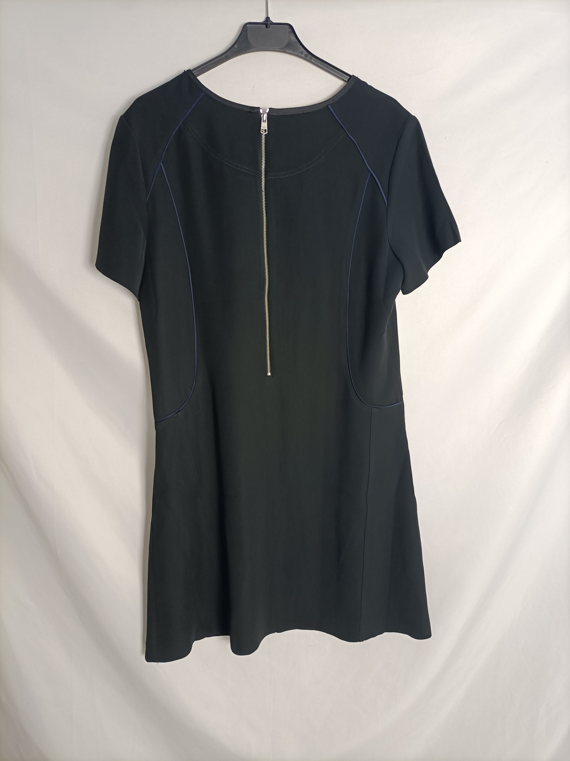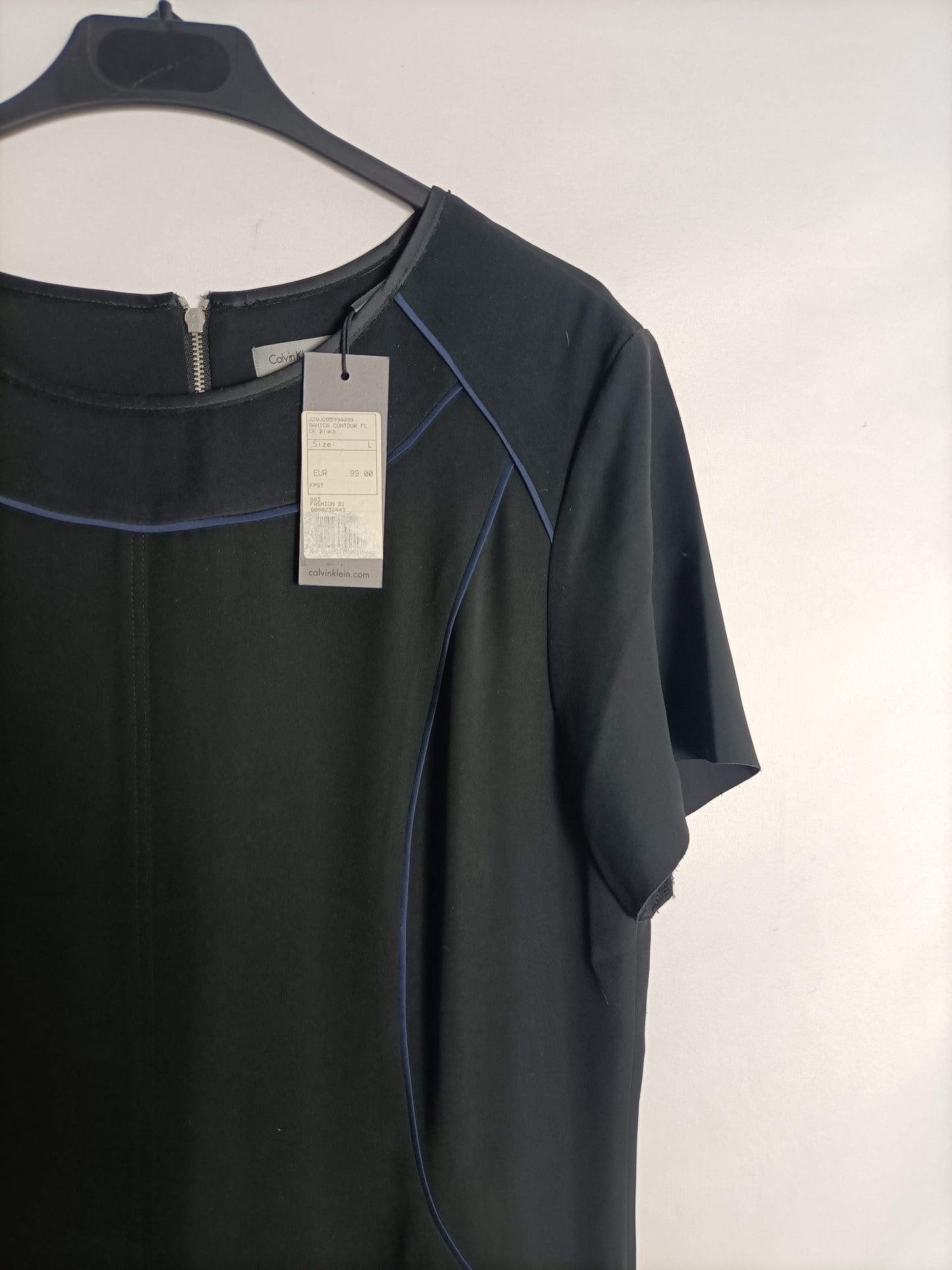 CALVIN KLEIN JEANS. Vestido recto negro detalles azules t. L