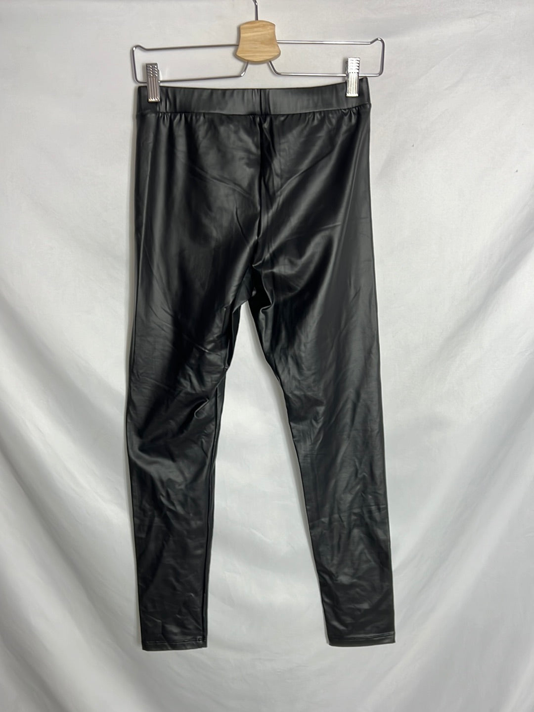 pantalón estilo leggins negro de polipiel. largo 93cm elástico