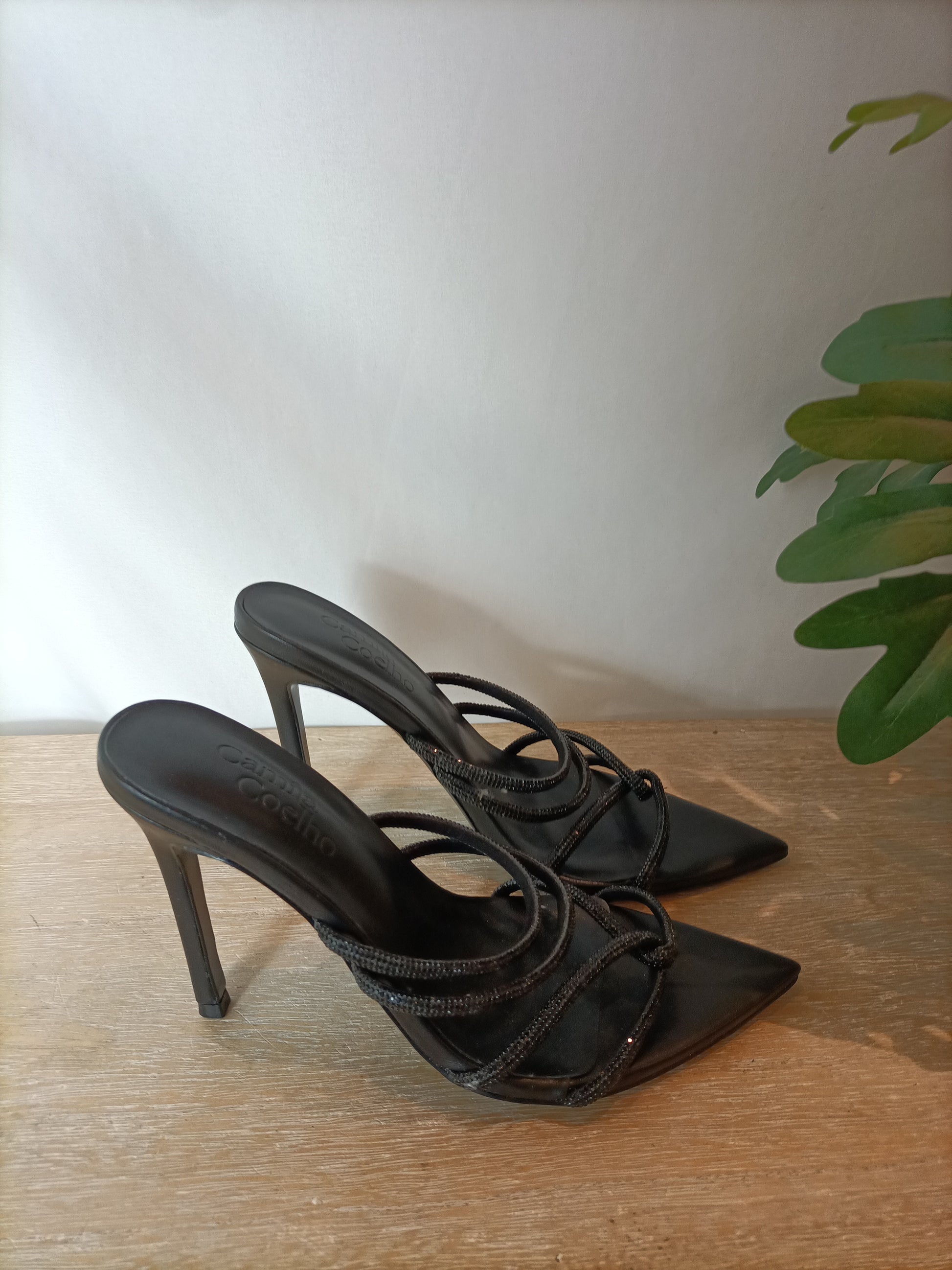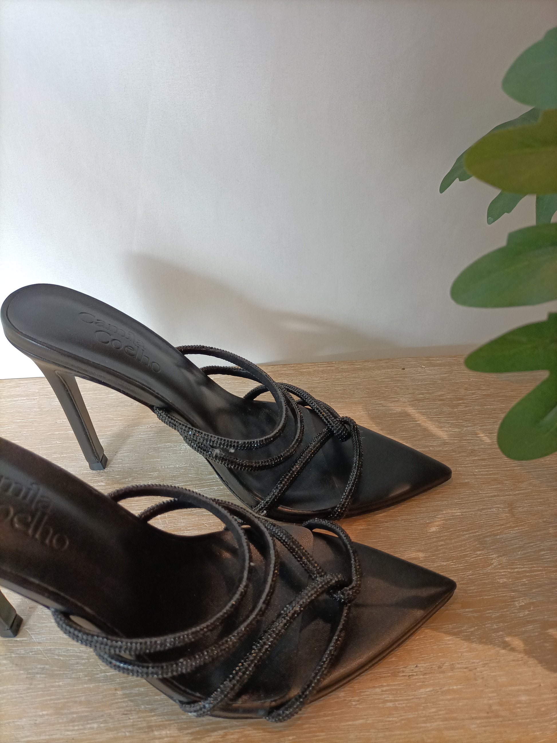 CAMILA COELHO. Sandalia negra tira brillo. T 6 (37)
