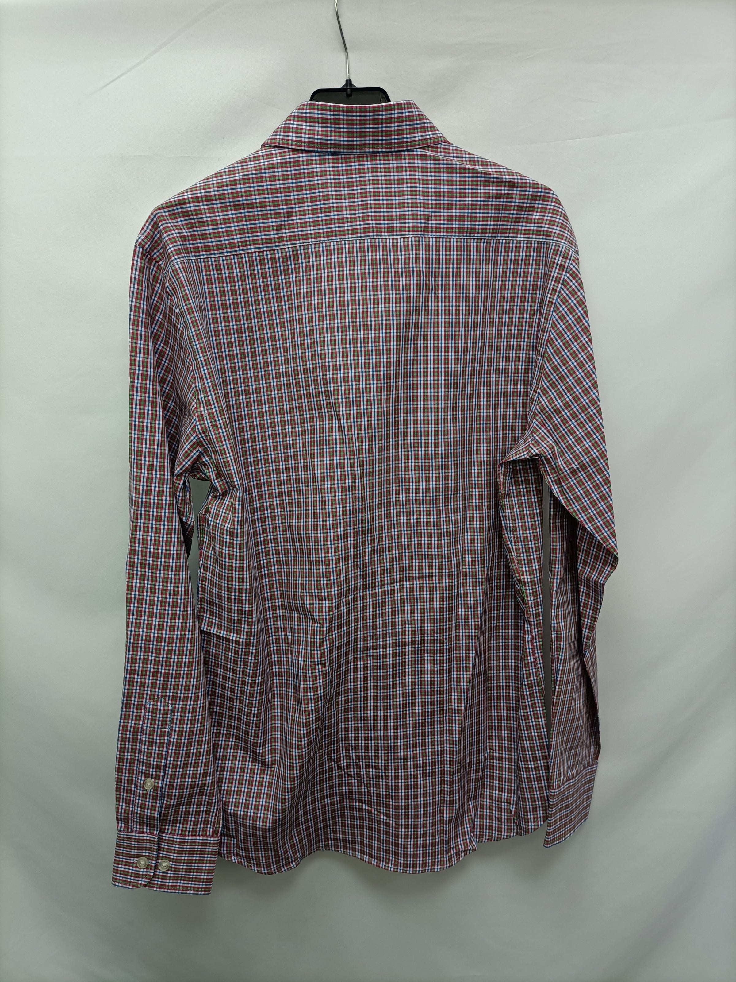 Camisa de cuadros de corte clásico en tonos rojos, verdes y azules. 100% algodón
