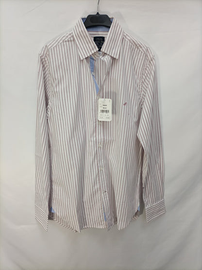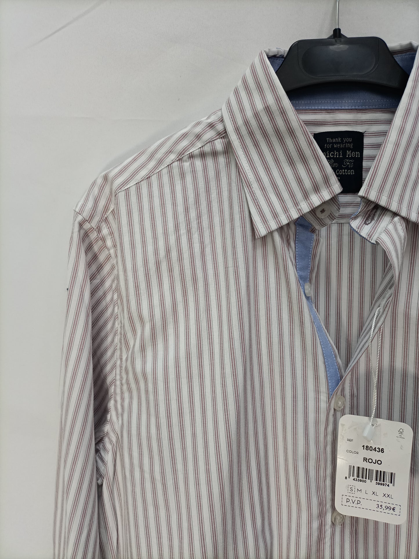 Camisa de rayas blanca y roja apagado estilo Oxford abototada. No elástico. 100% algodón.