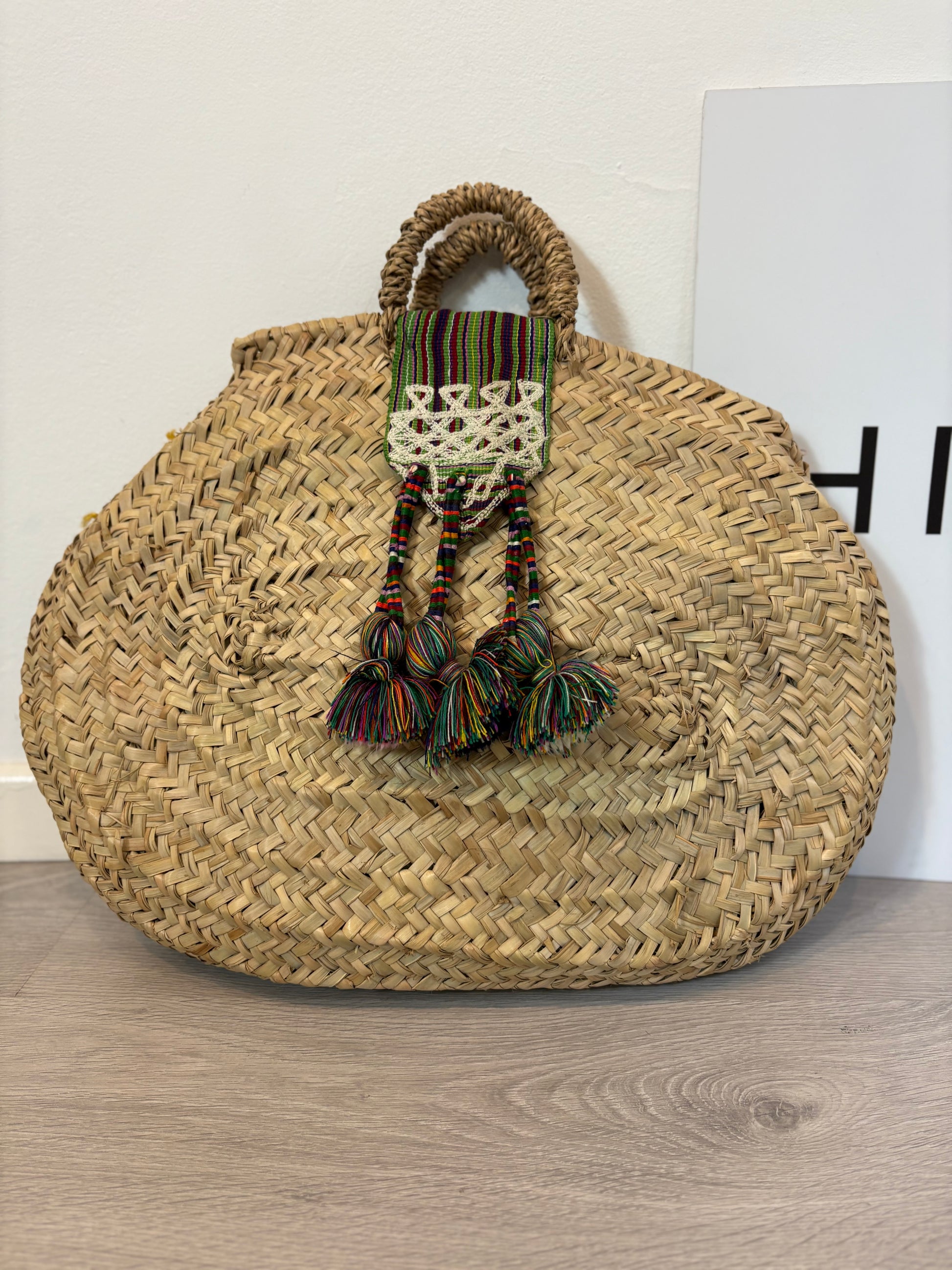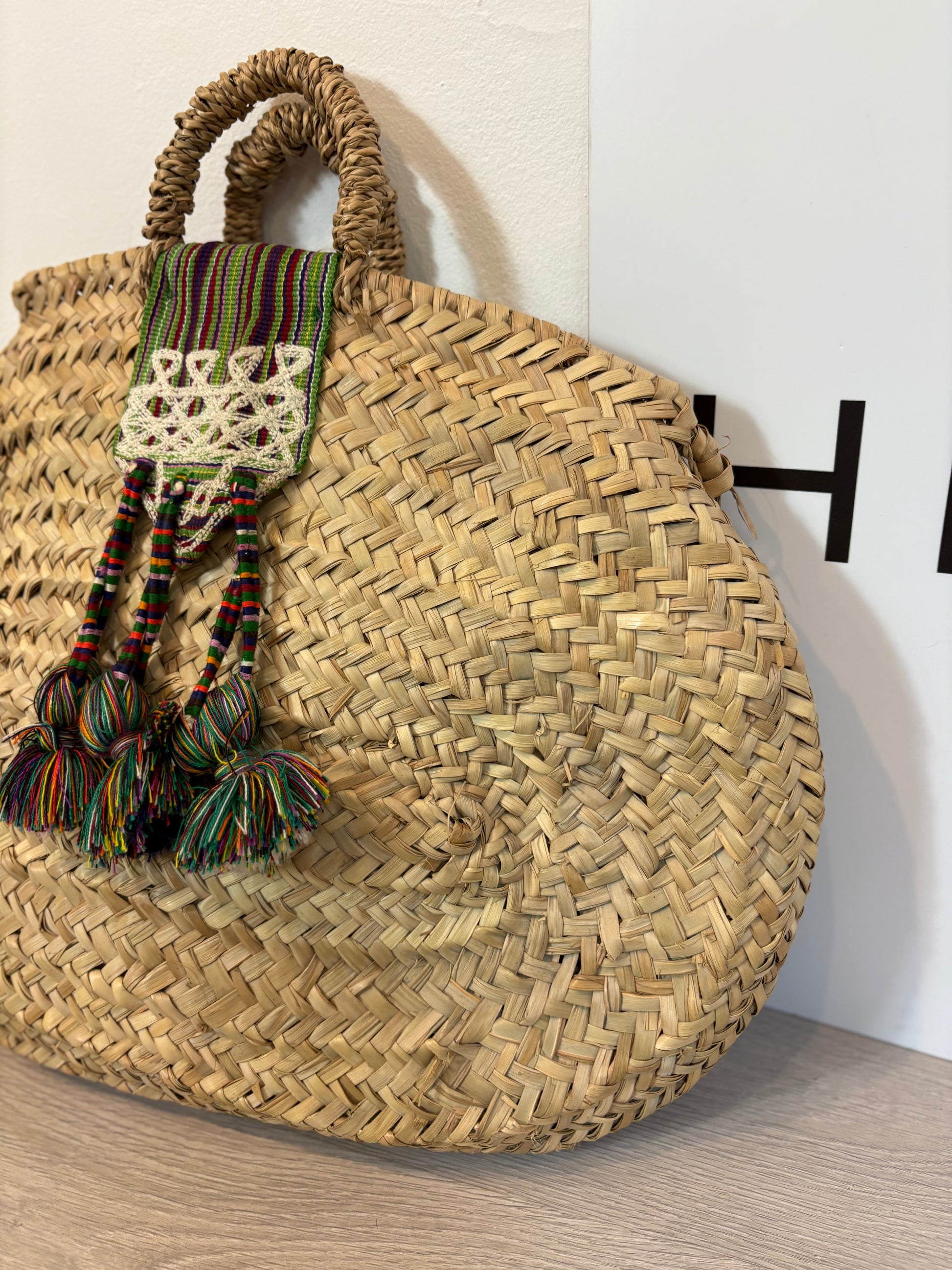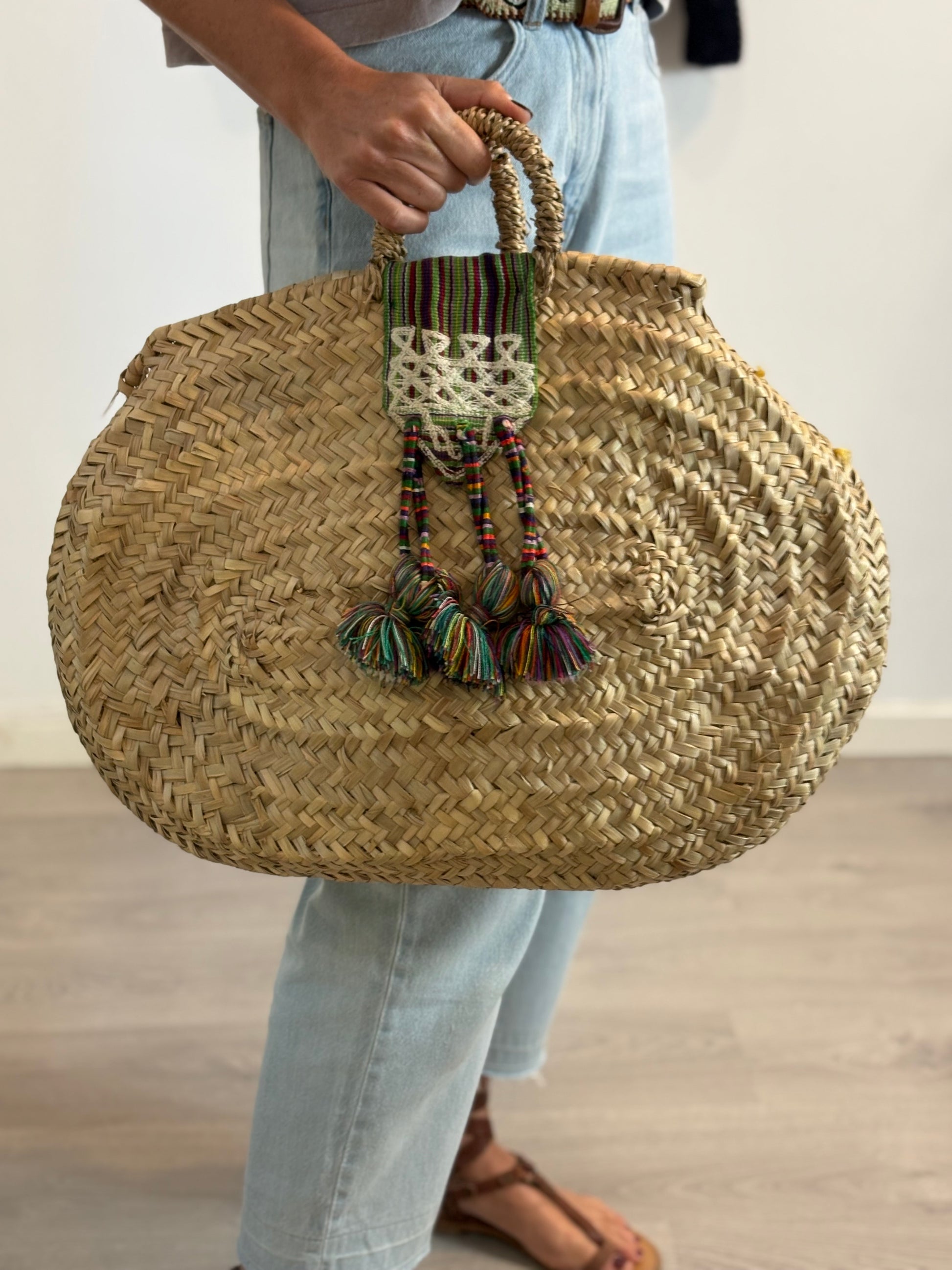 Capazo rafia detalles étnicos hecho a mano