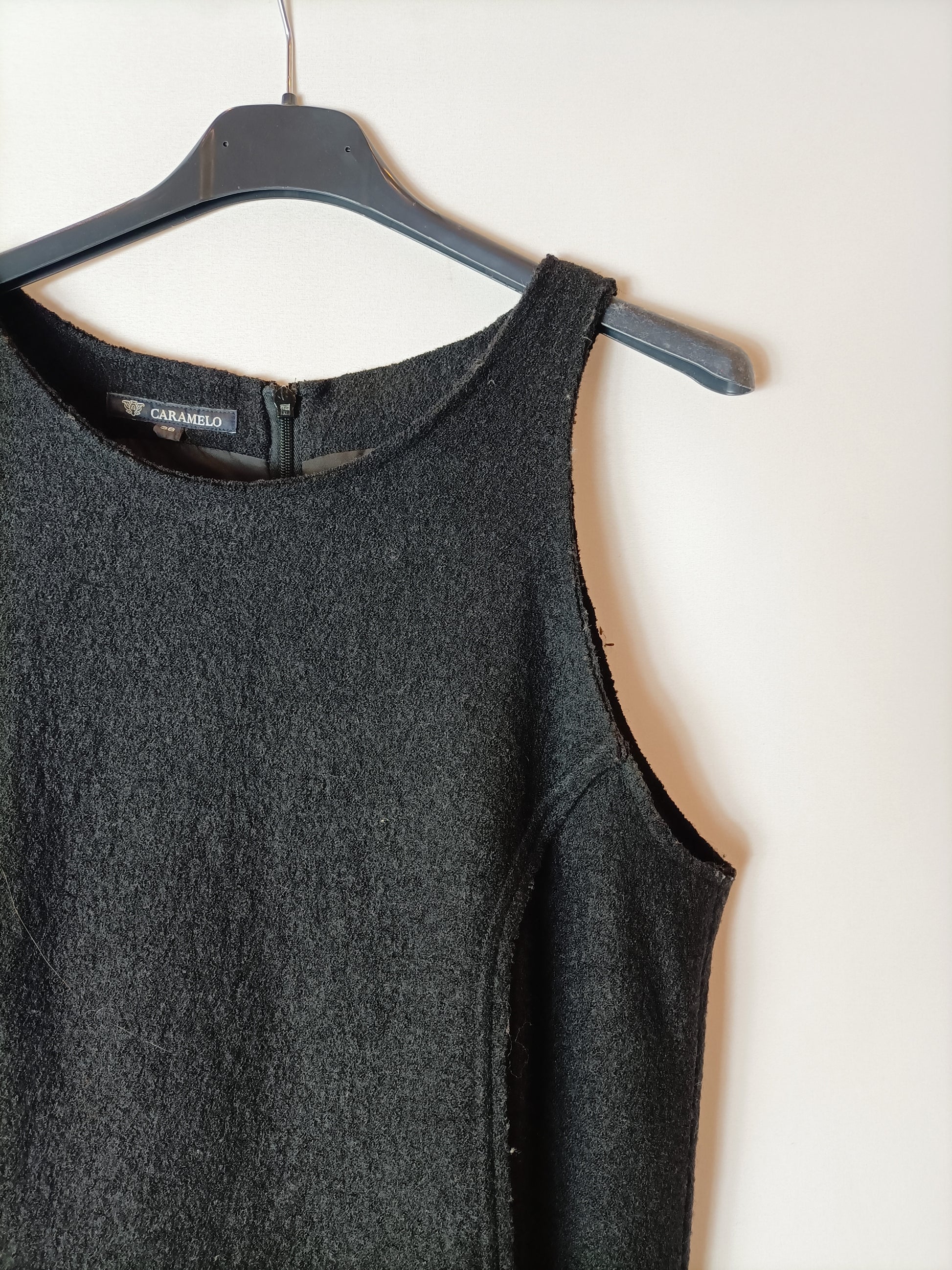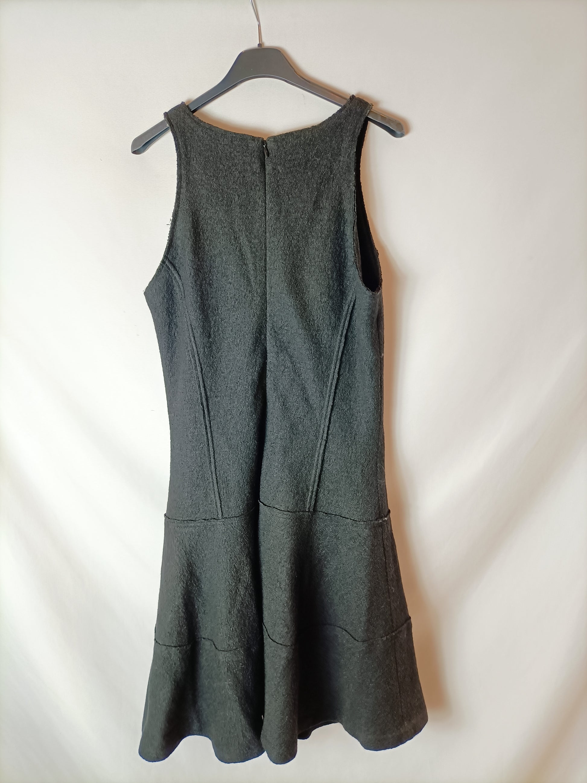 vestido corto (largo por la rodilla) de tejido estilo franela. Entallado en el pecho