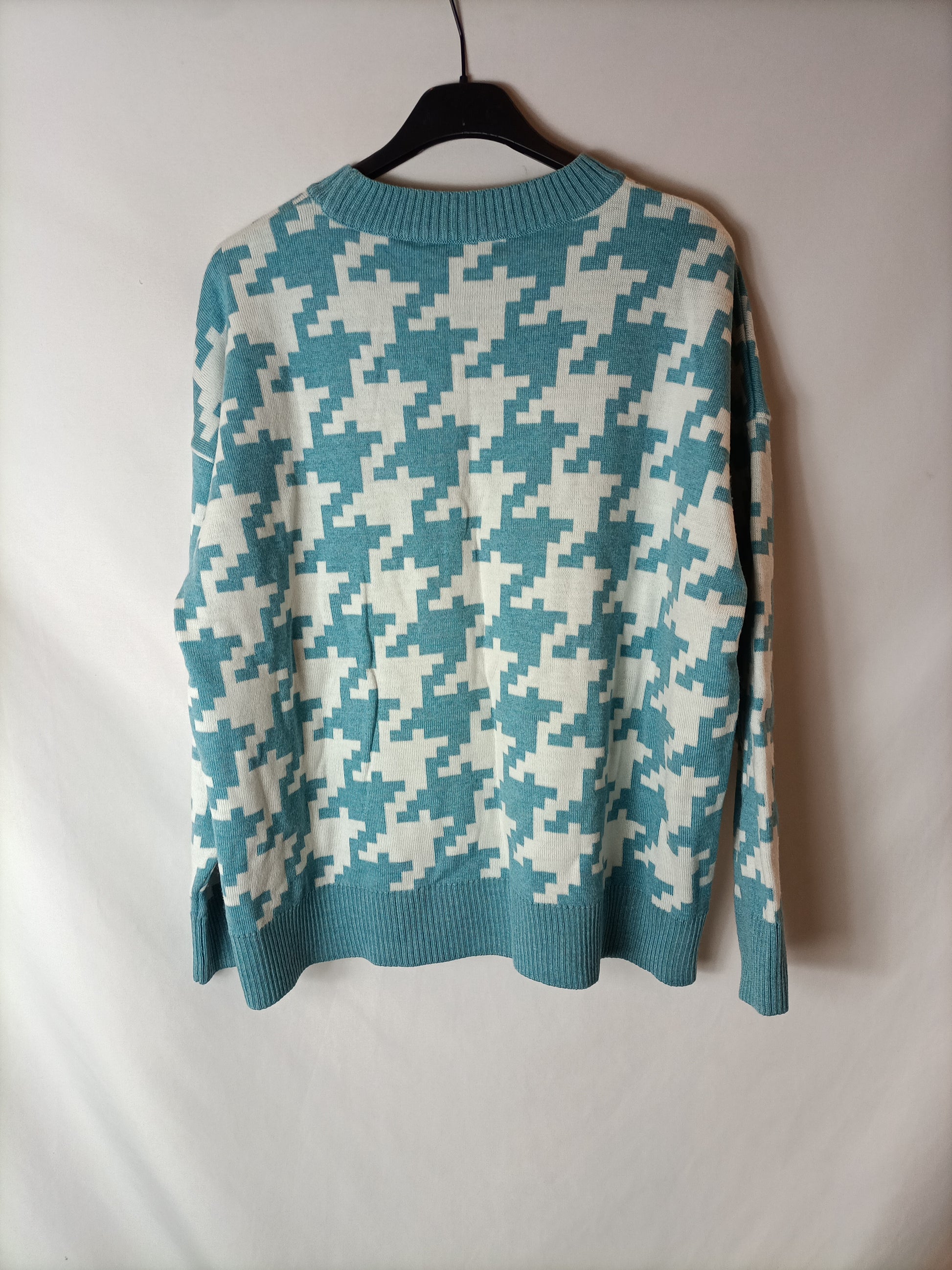 Jersey estampado geométrico azul celeste. 100% lana merino