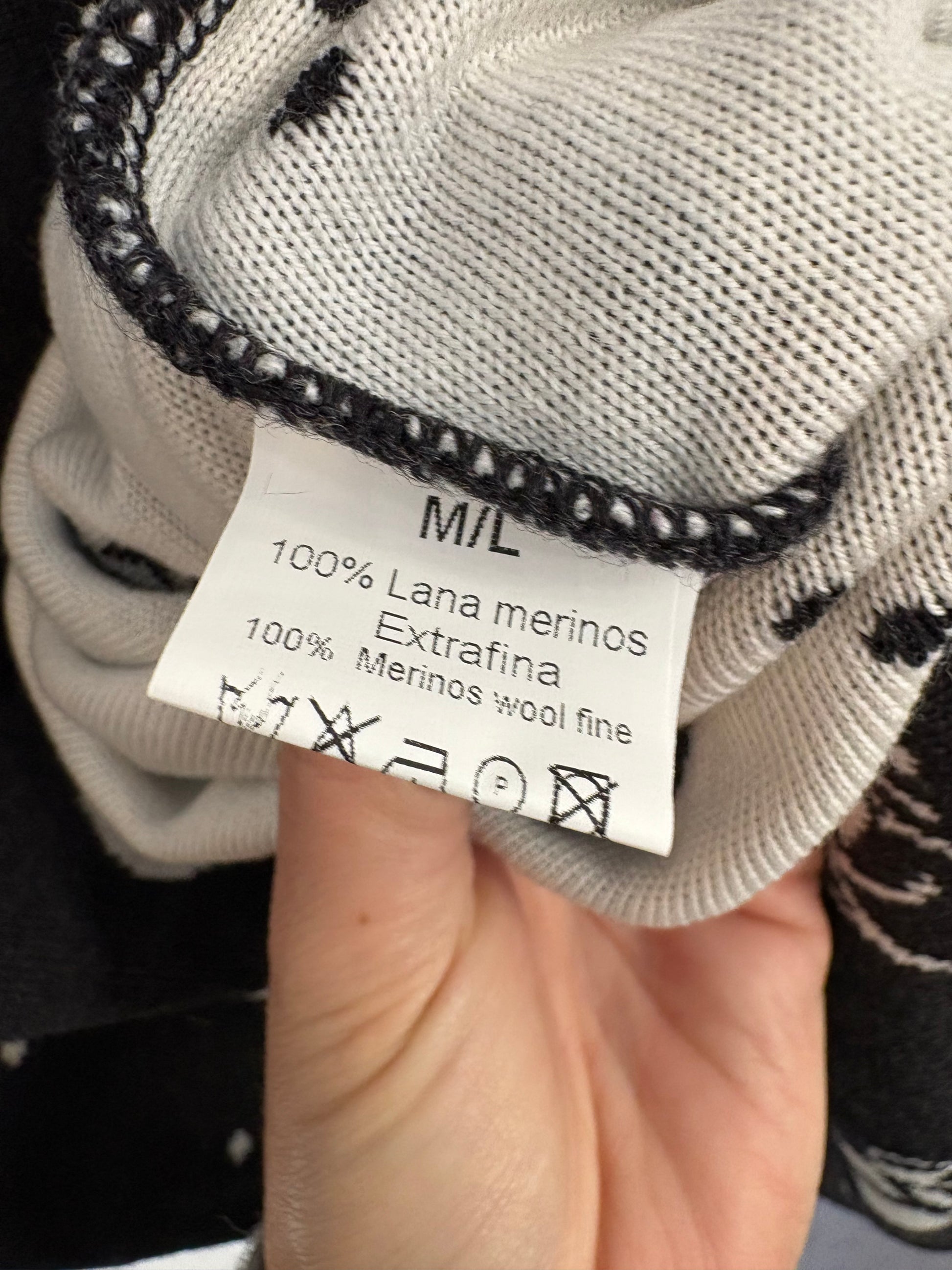 Espalda 51 cm , largo 94 cm/ 100% lana merino