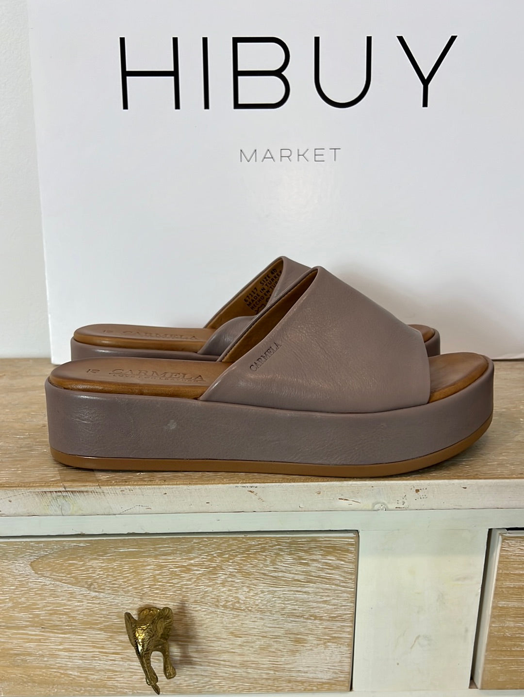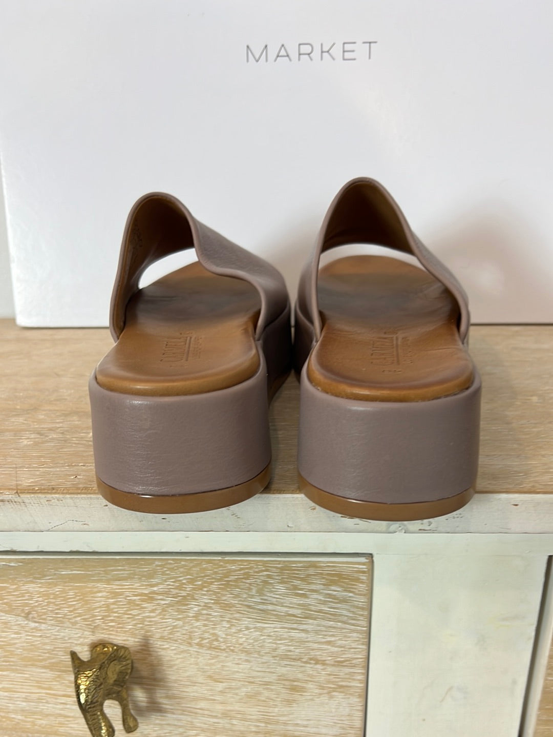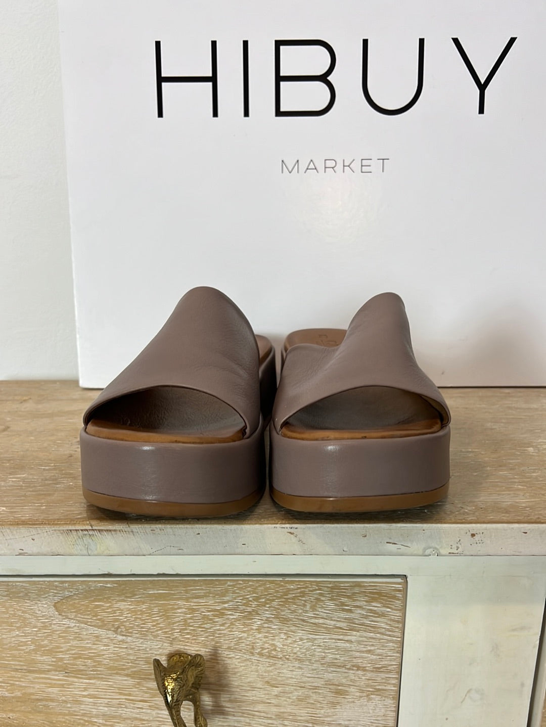 NUEVAS SIN USO. Sandalia plataforma piel color malva