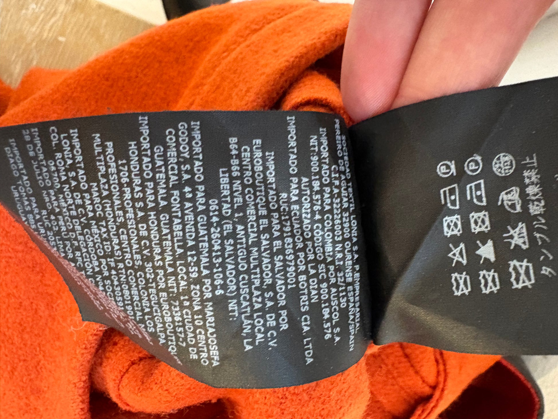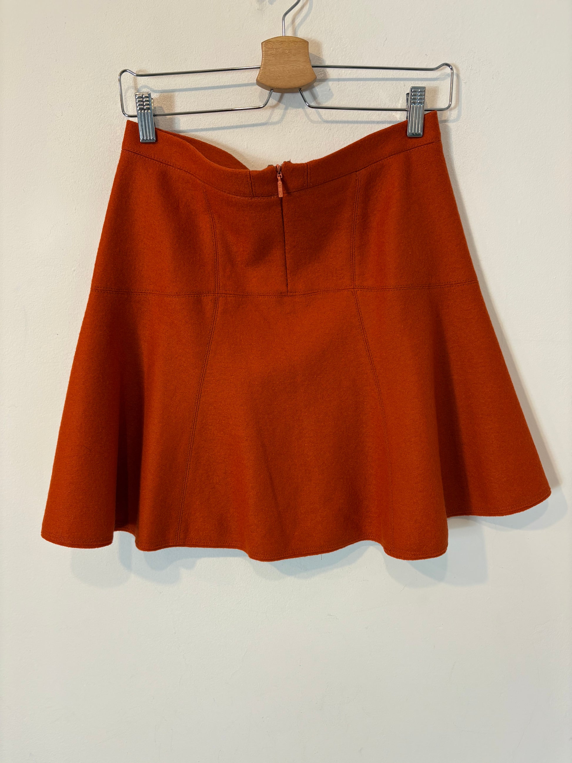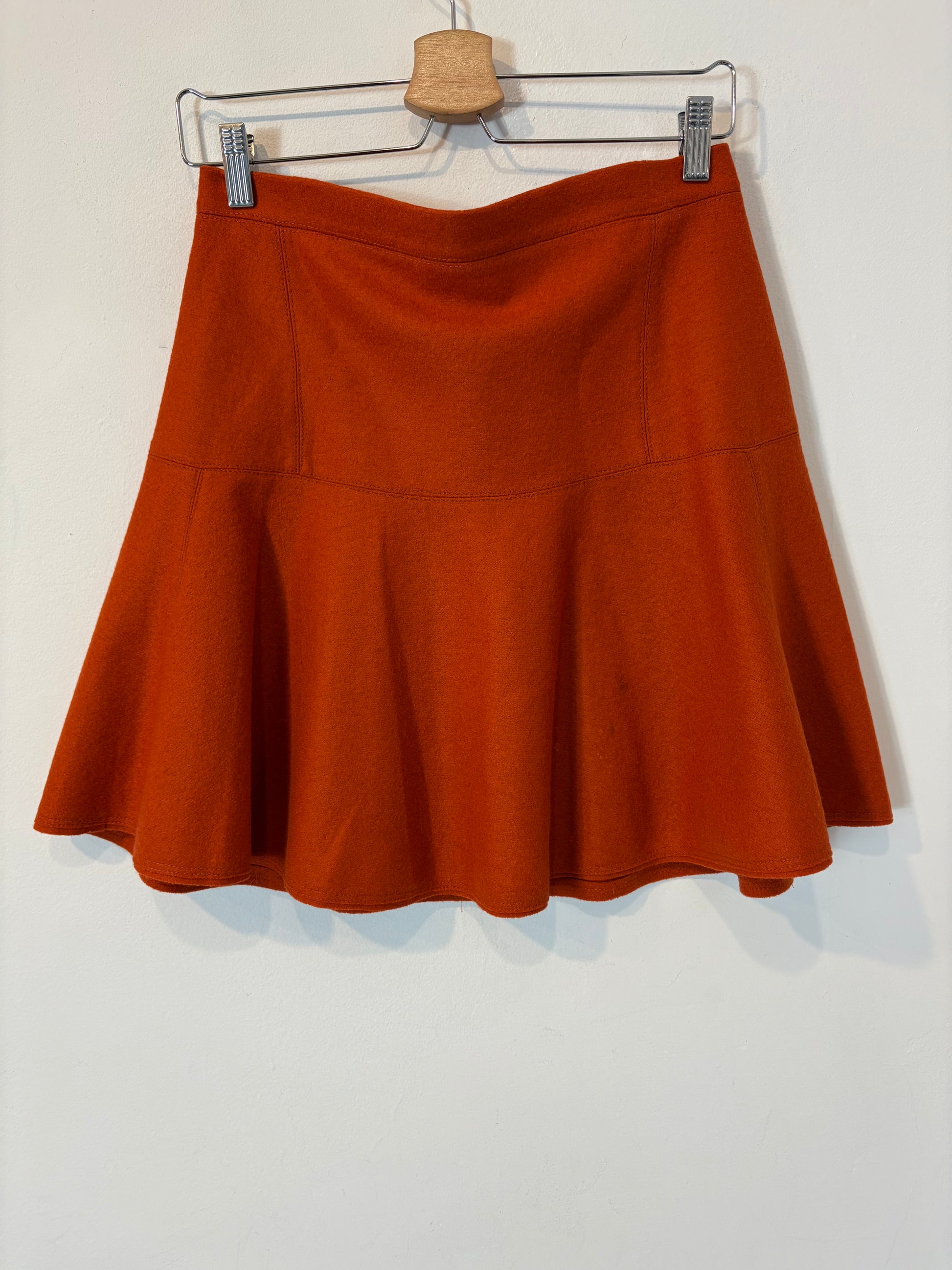 Cintura 38 cm, cadera alta 48 cm, cm, largo 48 cm. 100% lana. Talla 4 en etiqueta. Tara: mini mancha en la parte inferior poco visible (foto)