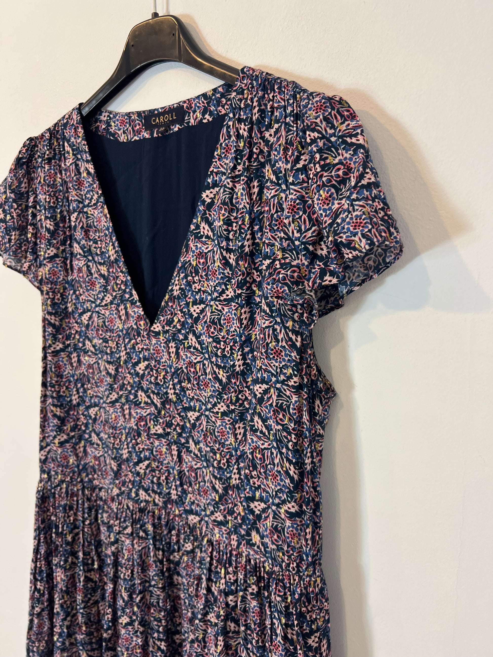 CAROLL. Vestido estampado hilos brillo. T 40 (S/M)