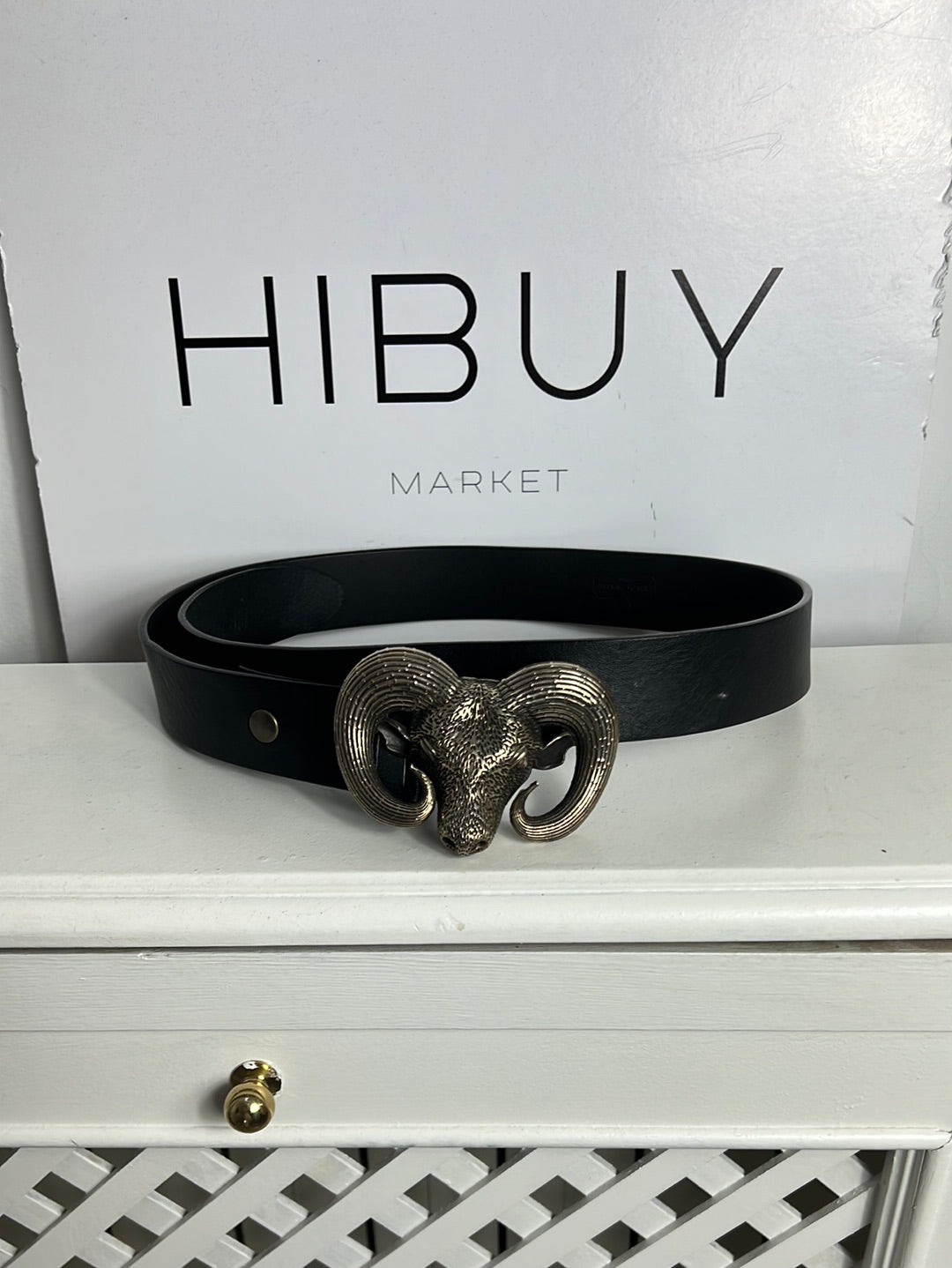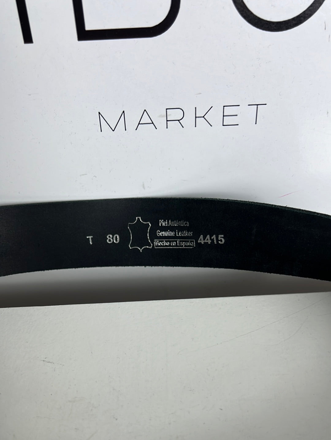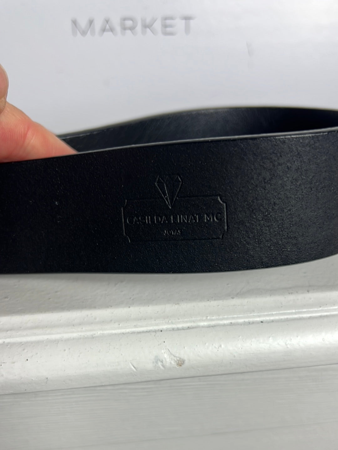 CASILDA FINAT. Cinturón negro piel hebilla animal. T 85