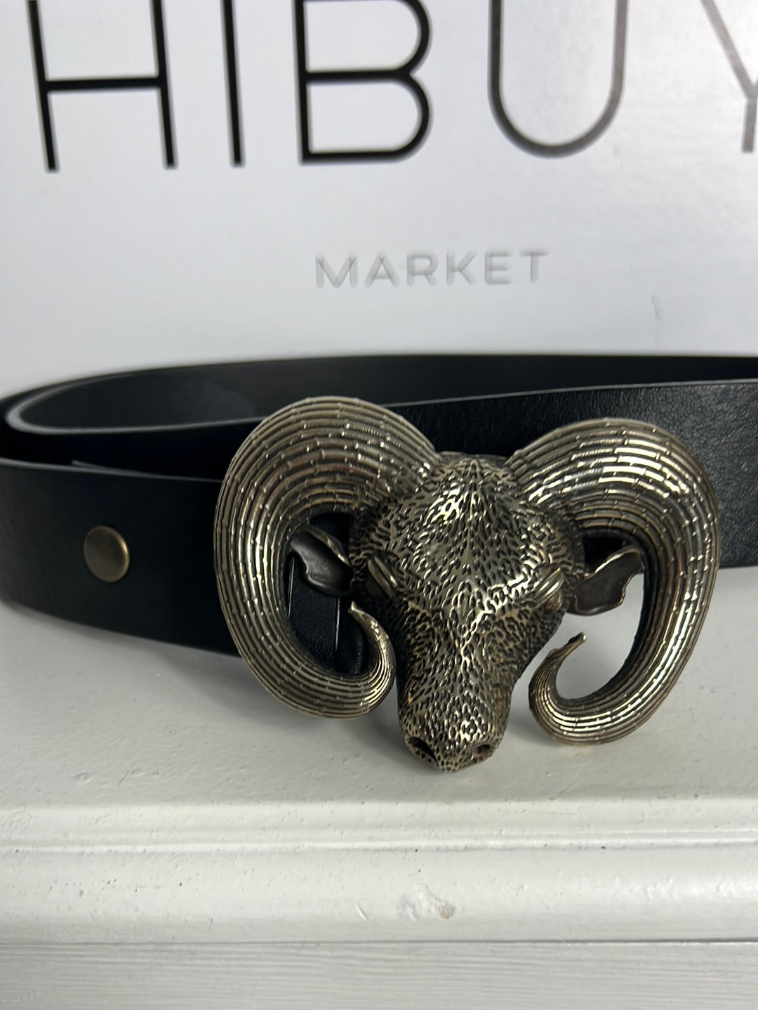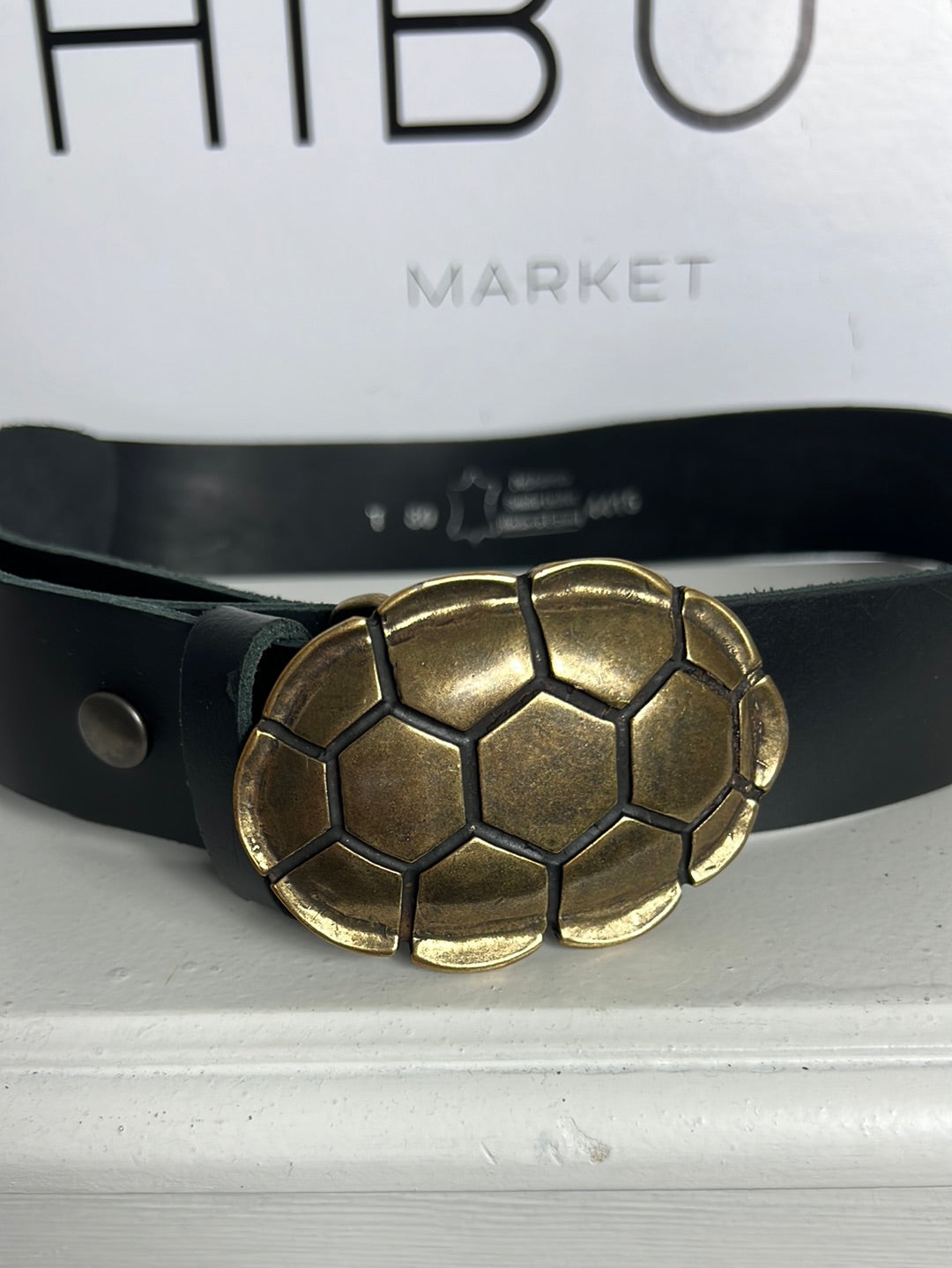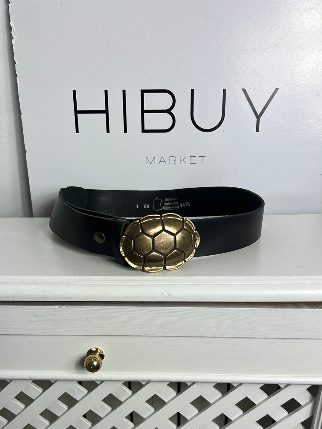 CASILDA FINAT. Cinturón negro piel hebilla animal. T 85