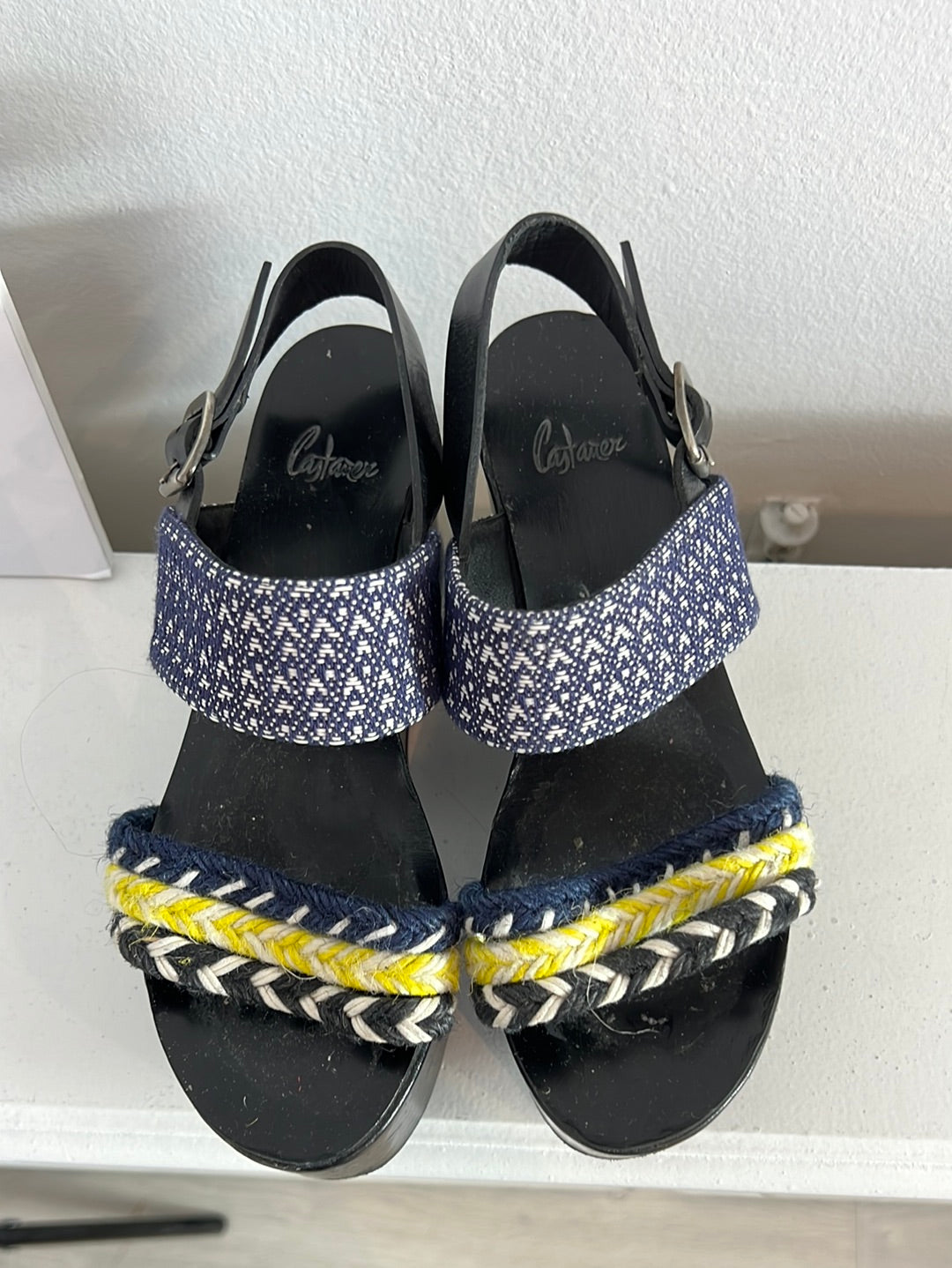 CASTAÑER. Cuñas negras tiras estilo étnico. T 35 (Tara)