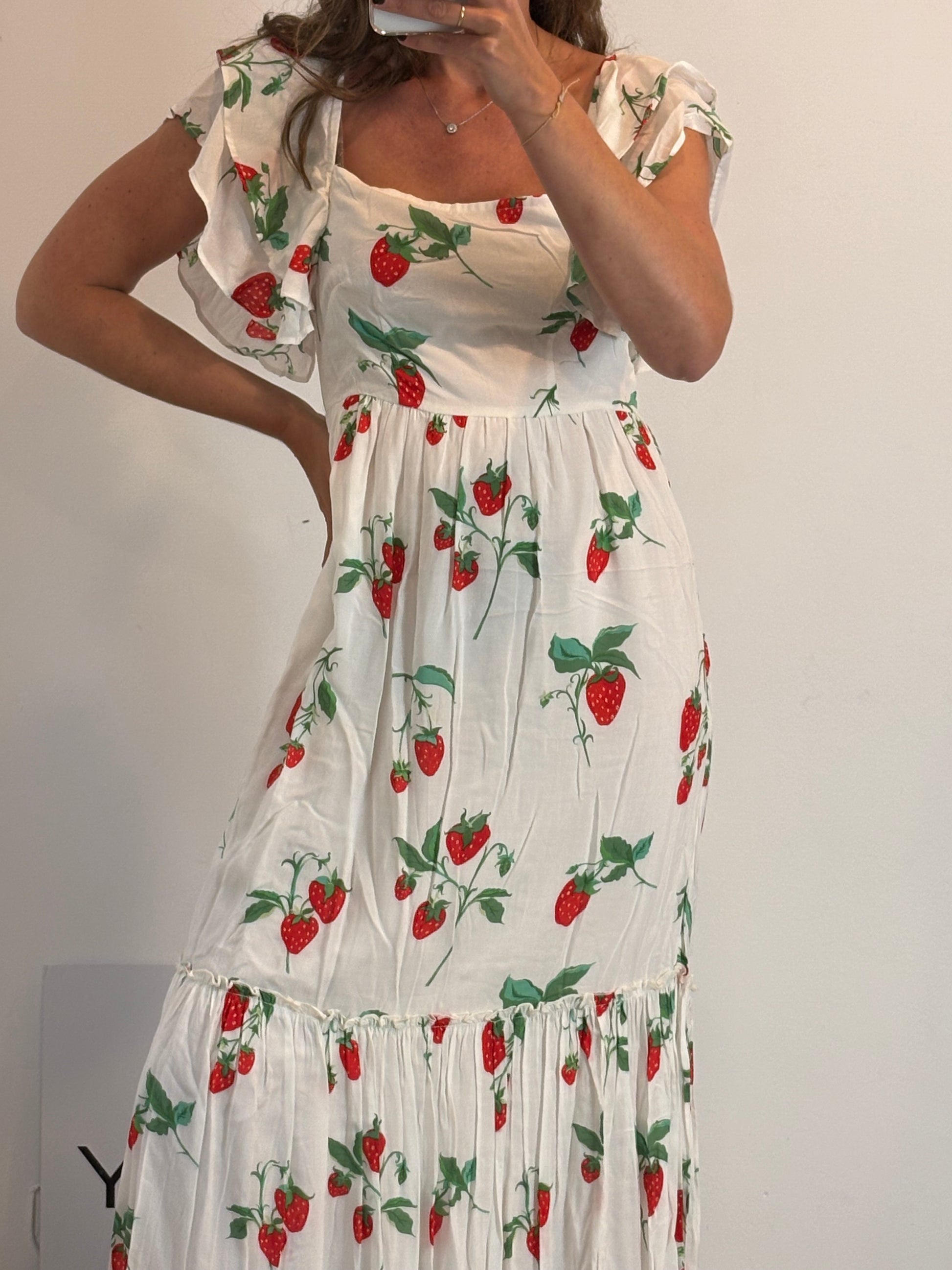 CASTAÑO DE INDIAS. Vestido largo blanco estampado. T S
