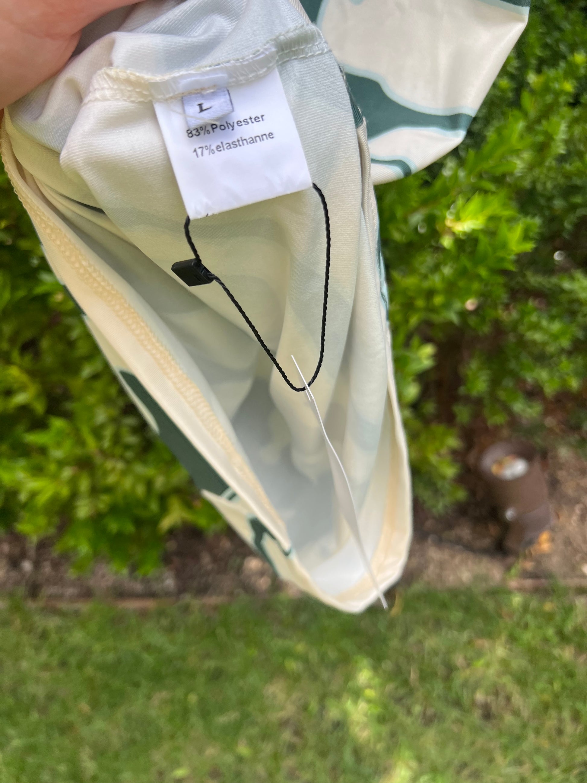 NUEVO CON ETIQUETA. Vestido elástico estampado verdes y espalda baja. En etiqueta marca talla L pero talla como un M principalmente. Espalda 43 cm , Largo 139 cm